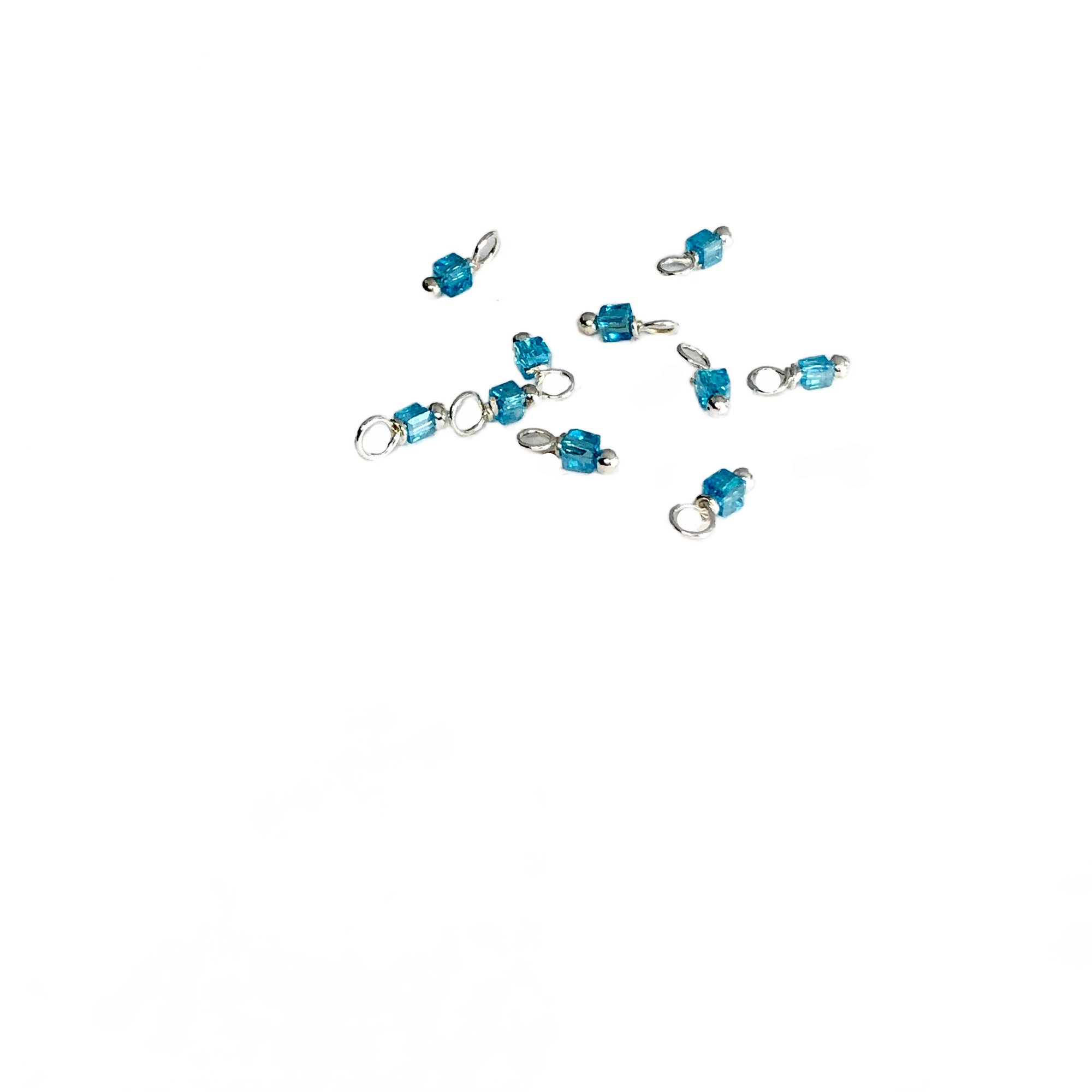 10PC. AQUA Cube Czech Glass Bead Charms//10PC Hand Made Glass Cube bead charms