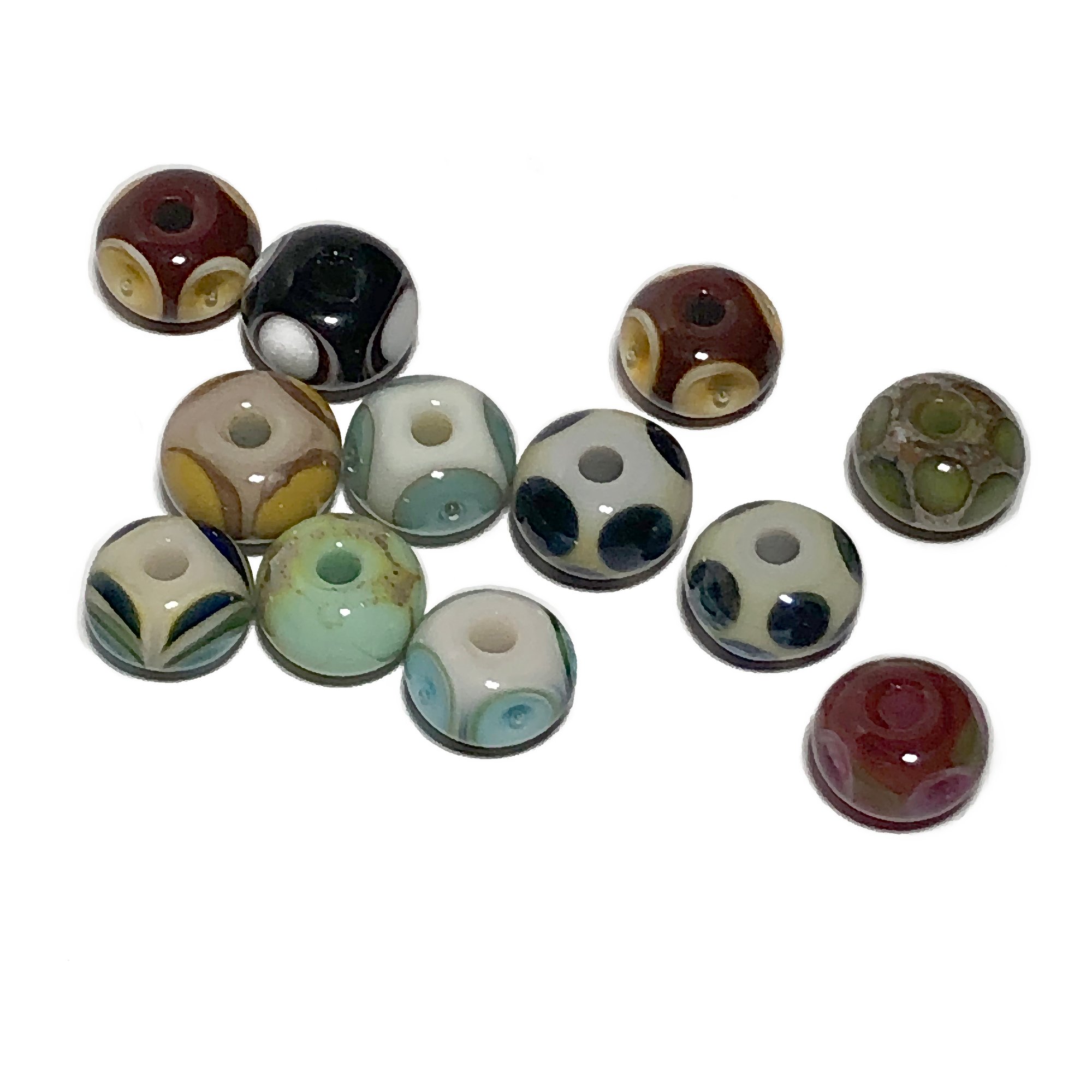 12PC. DONUT Mixed Shape Texture & Color lamp work bead lot. Kiln fired lamp work beads CKS-1B