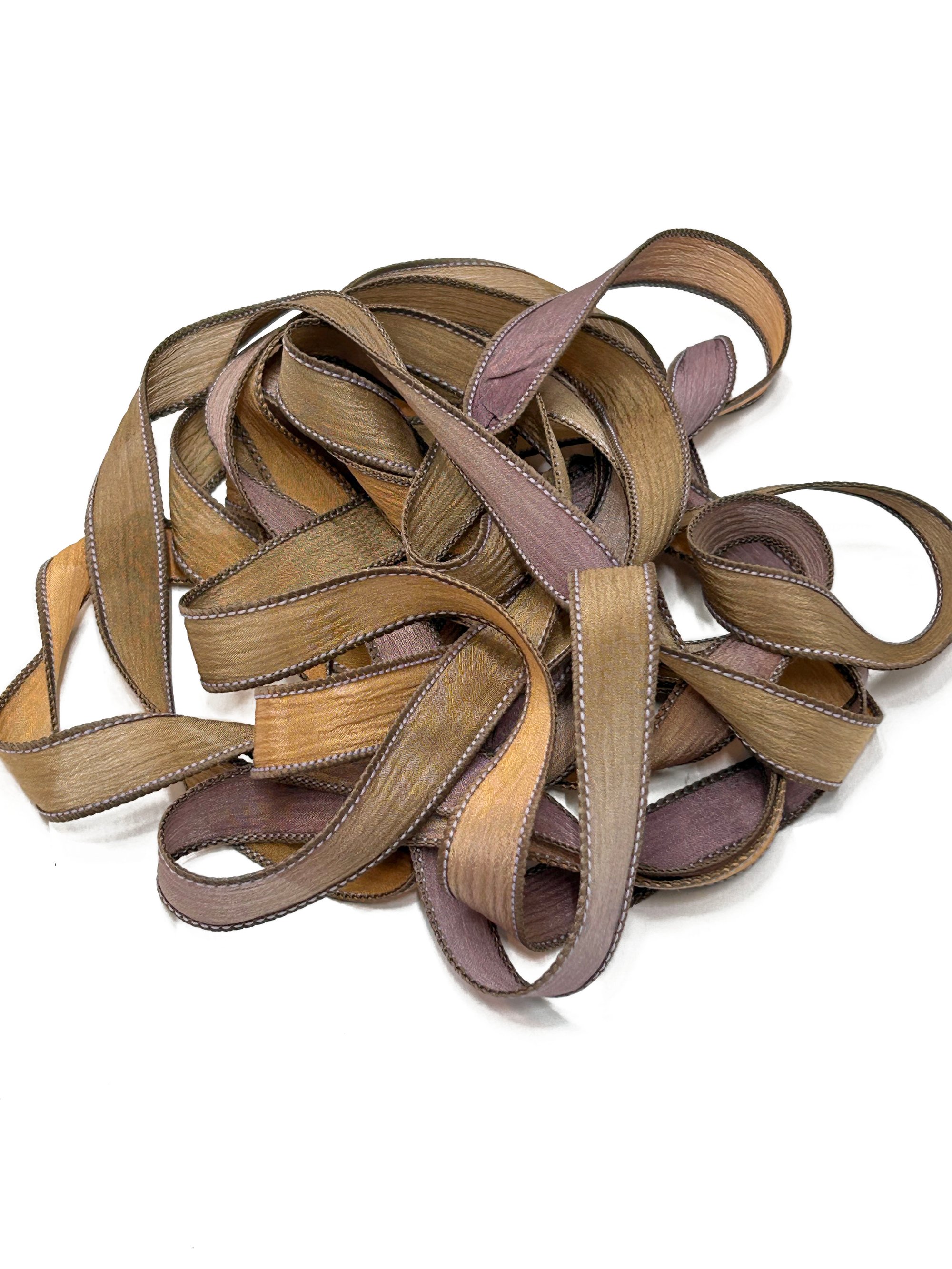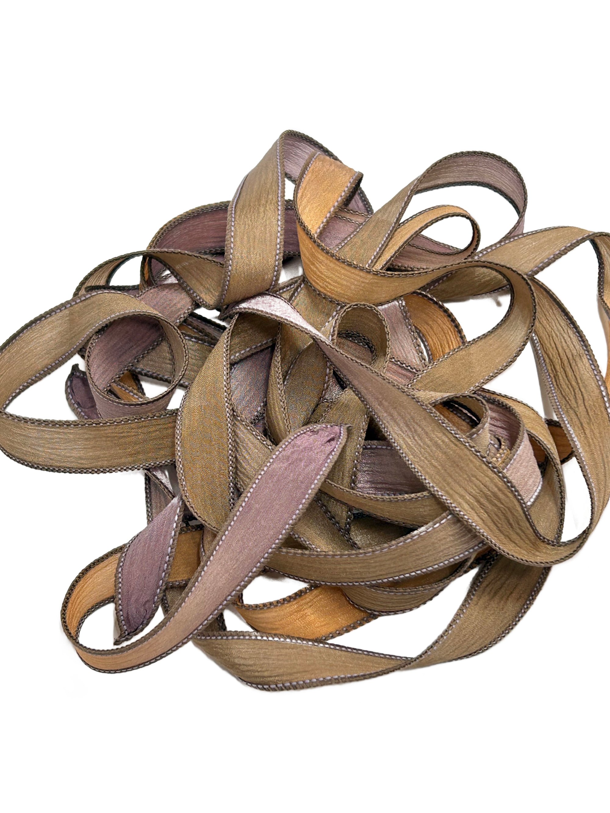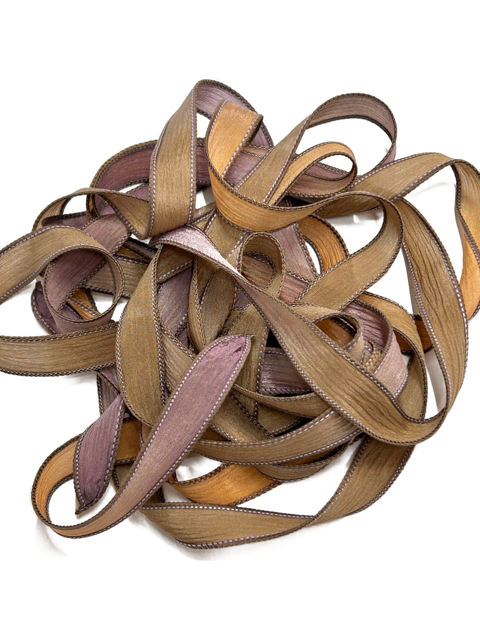 HAND DYED RIBBONS CAN APPEAR LIGHTER OR DARKER IN PERSON. SLIGHT VARIATIONS MAY OCCUR FROM ONE DYE LOT TO ANOTHER.