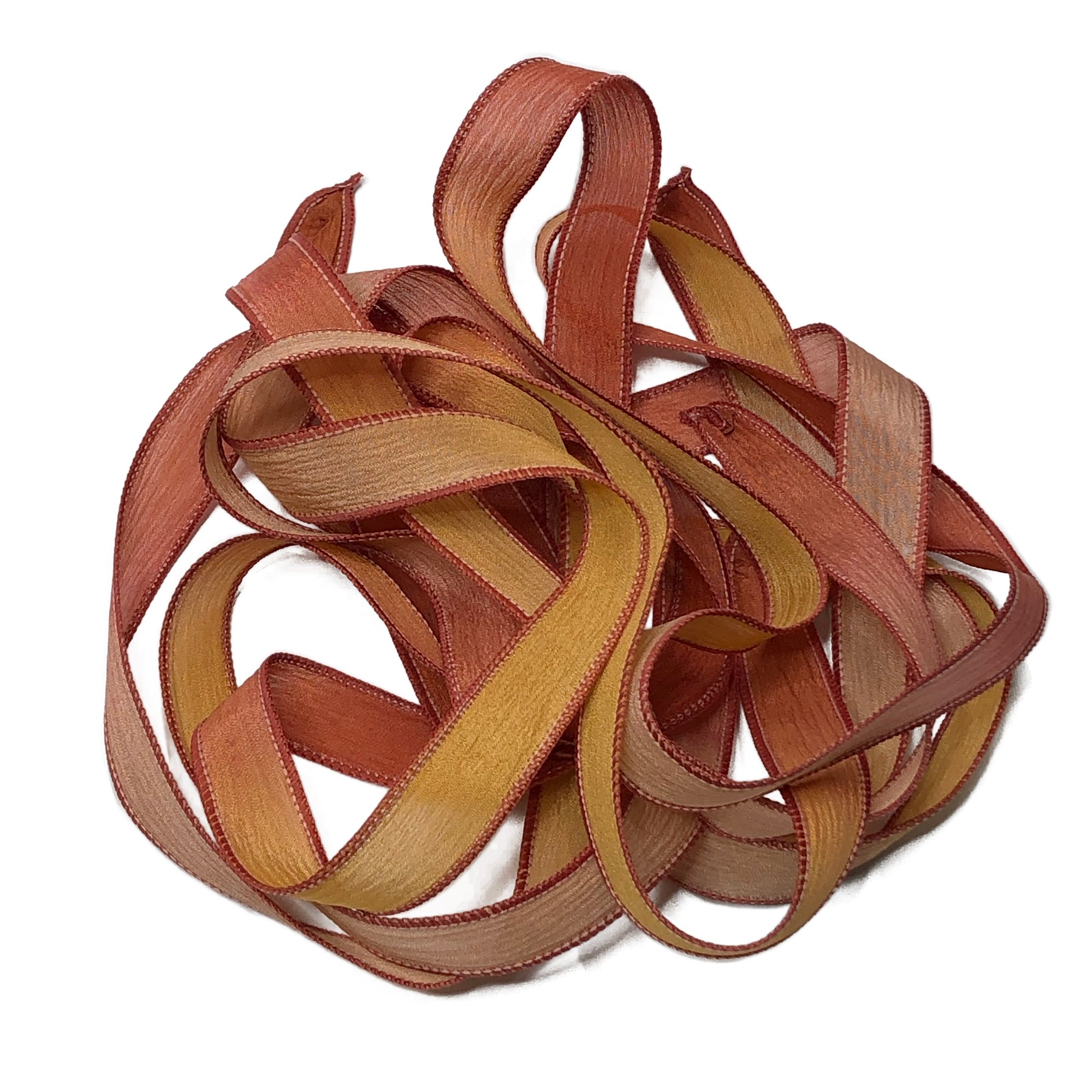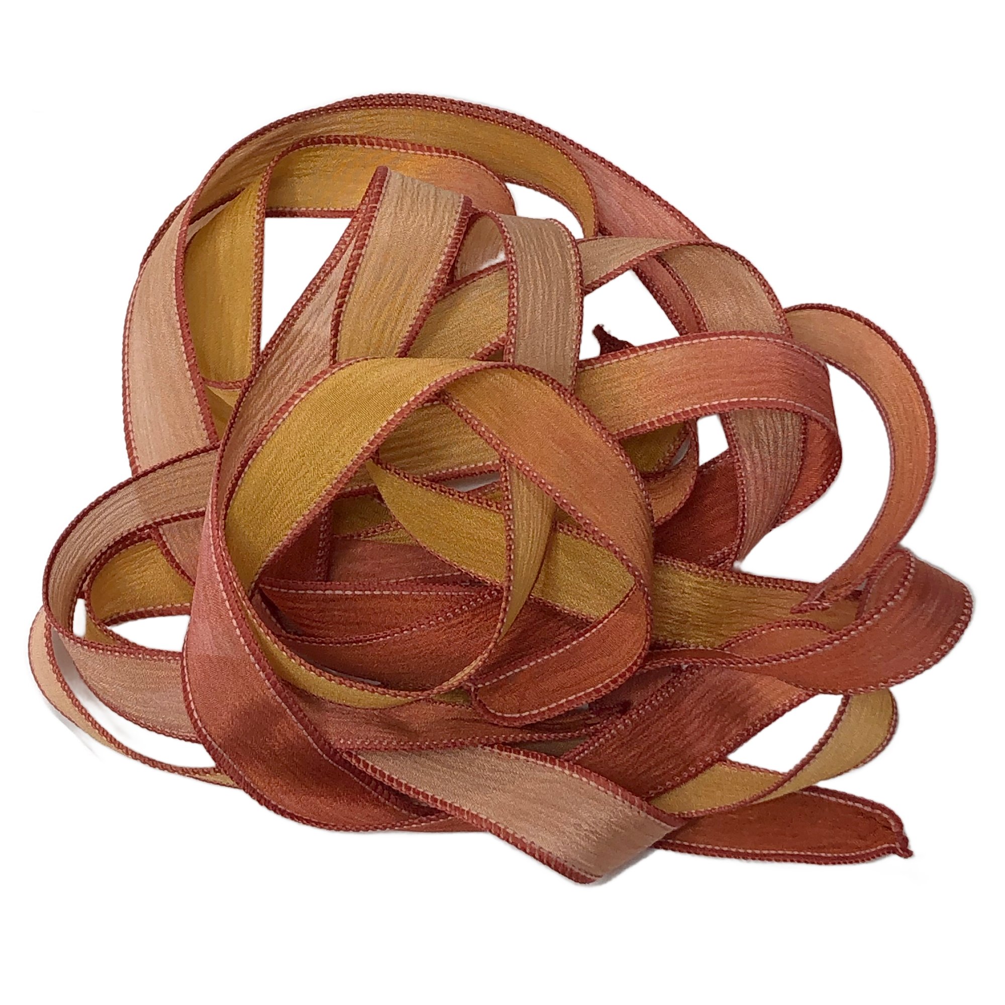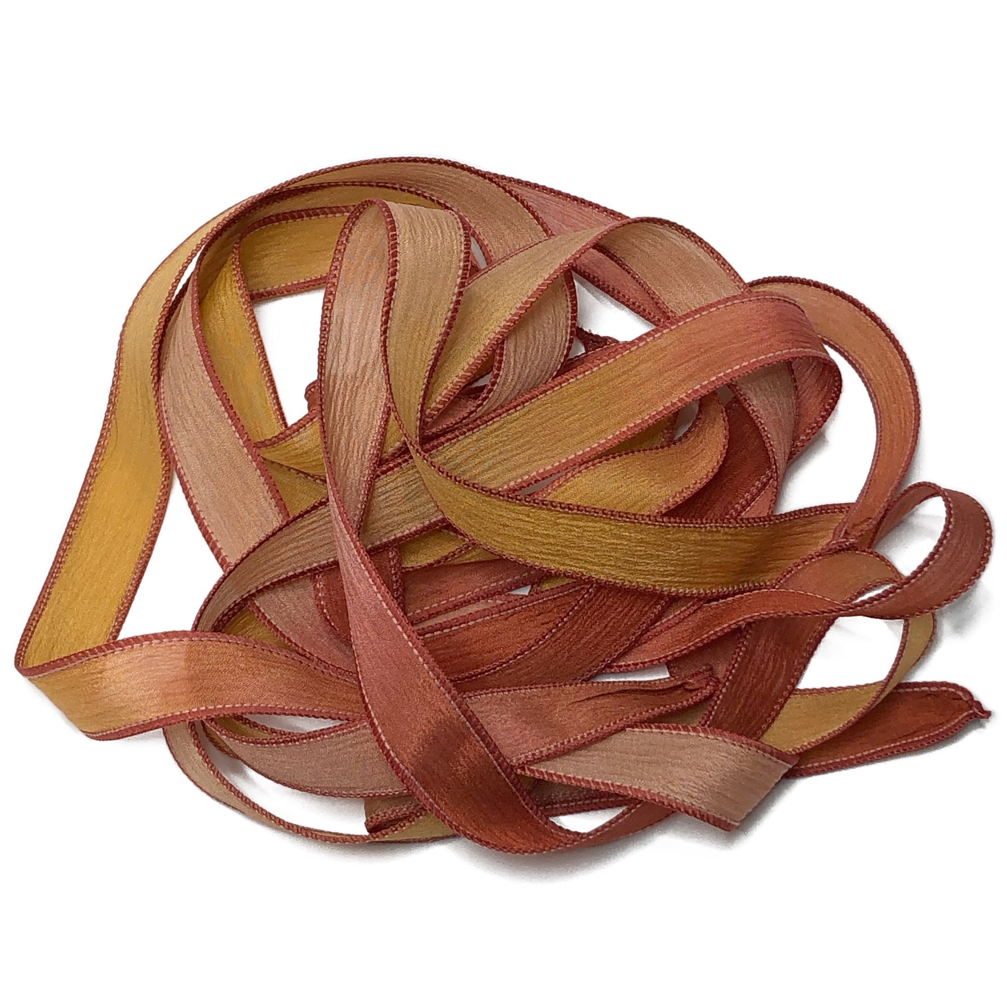 HAND DYED RIBBONS CAN APPEAR LIGHTER OR DARKER IN PERSON. SLIGHT VARIATIONS MAY OCCUR FROM ONE DYE LOT TO ANOTHER.