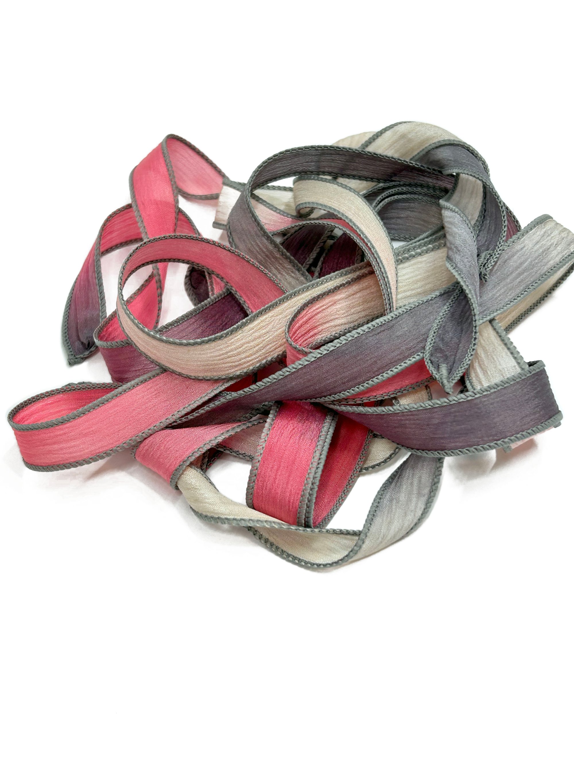 1PC. COSMIC BURST 42" Hand Dyed Finished Edge Silk Wrist Wrap Bracelet/Jewelry/Craft Ribbons
