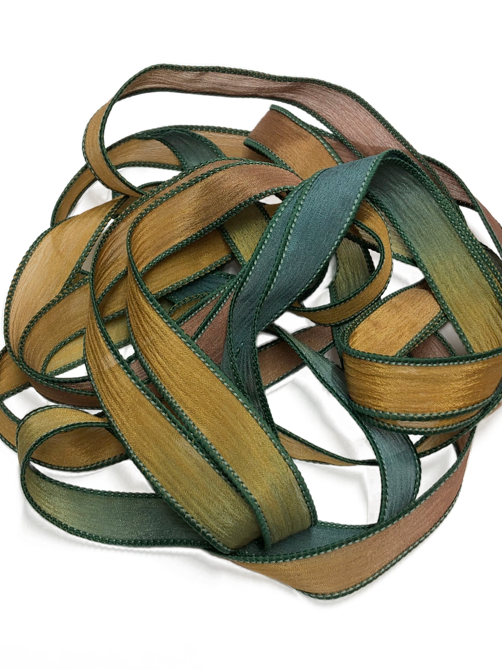 HAND DYED RIBBONS CAN APPEAR LIGHTER OR DARKER IN PERSON. SLIGHT VARIATIONS MAY OCCUR FROM ONE DYE LOT TO ANOTHER.