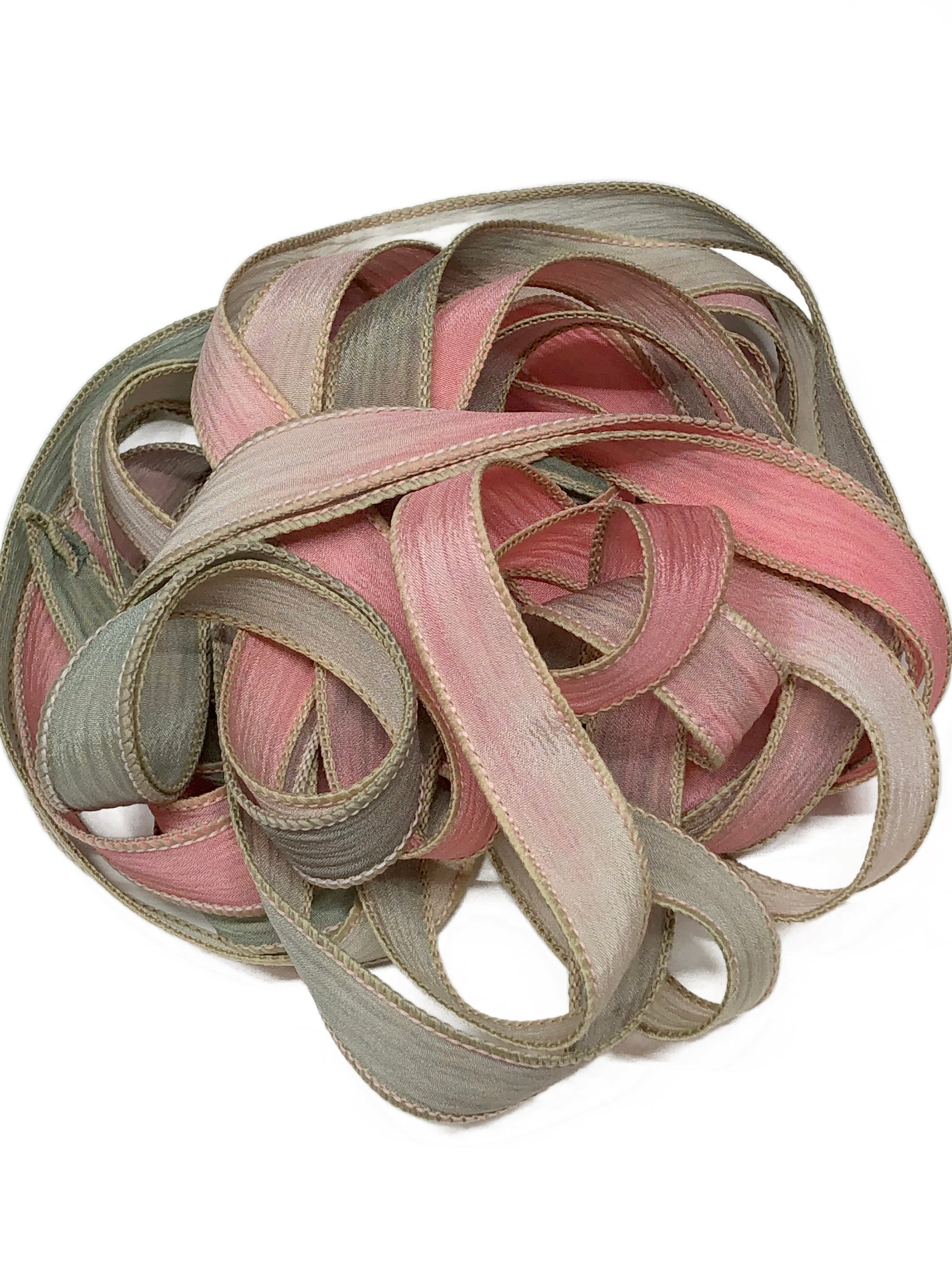 HAND DYED RIBBONS CAN APPEAR LIGHTER OR DARKER IN PERSON. SLIGHT VARIATIONS MAY OCCUR FROM ONE DYE LOT TO ANOTHER.