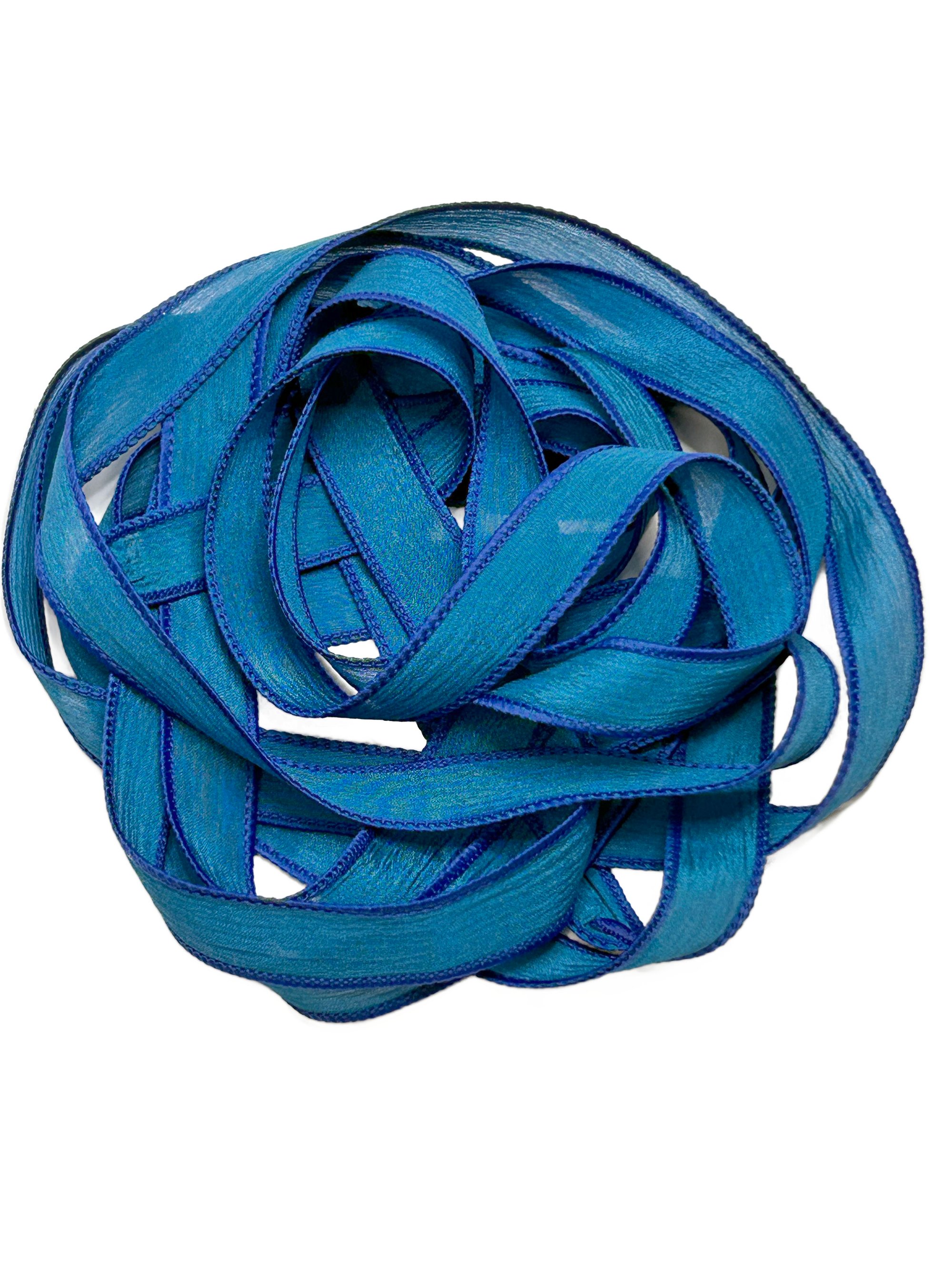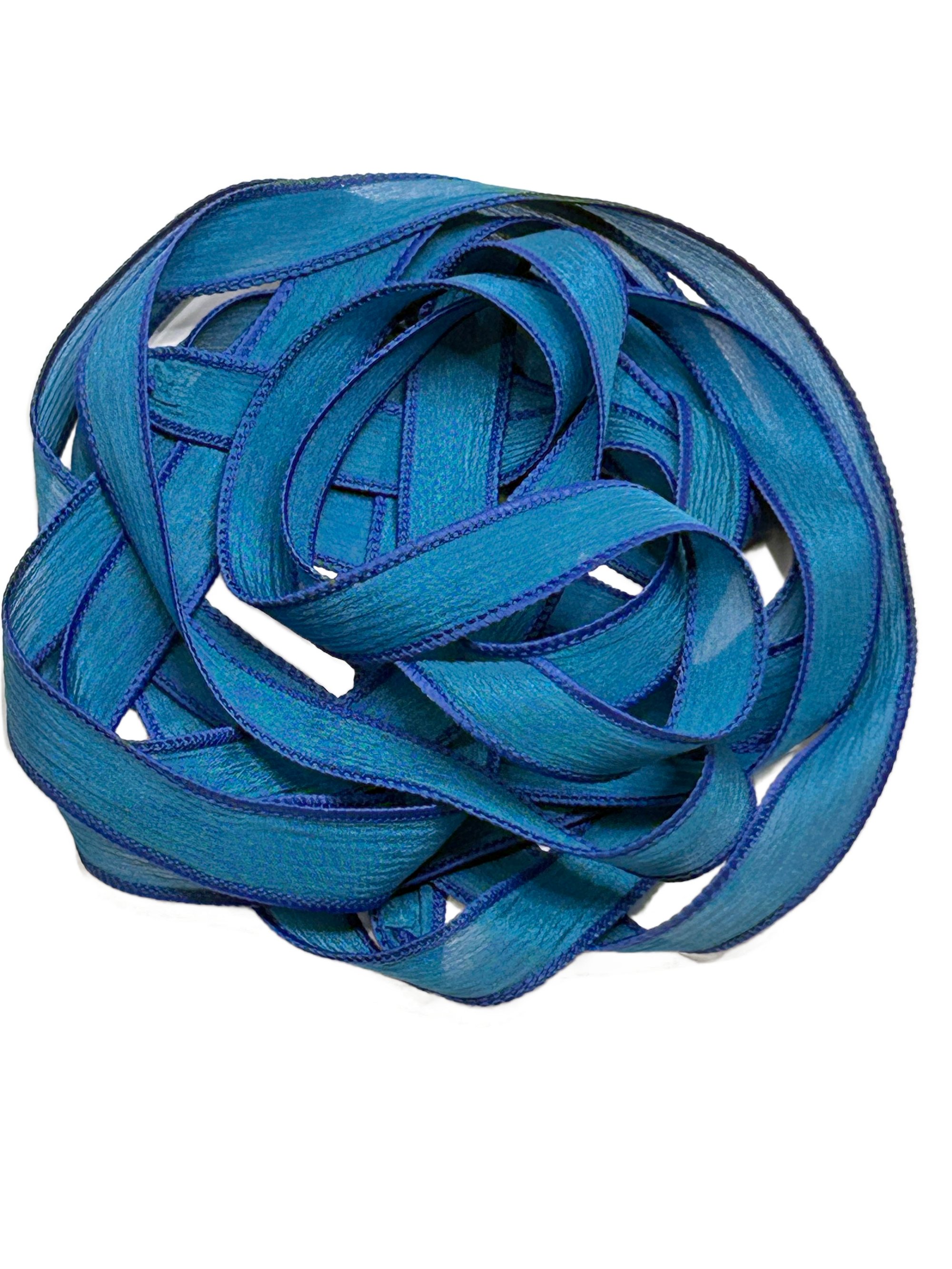 1PC. ISLAND BLUE 42" Hand Dyed Finished Edge Silk Wrist Wrap Bracelet/Jewelry/Craft Ribbons