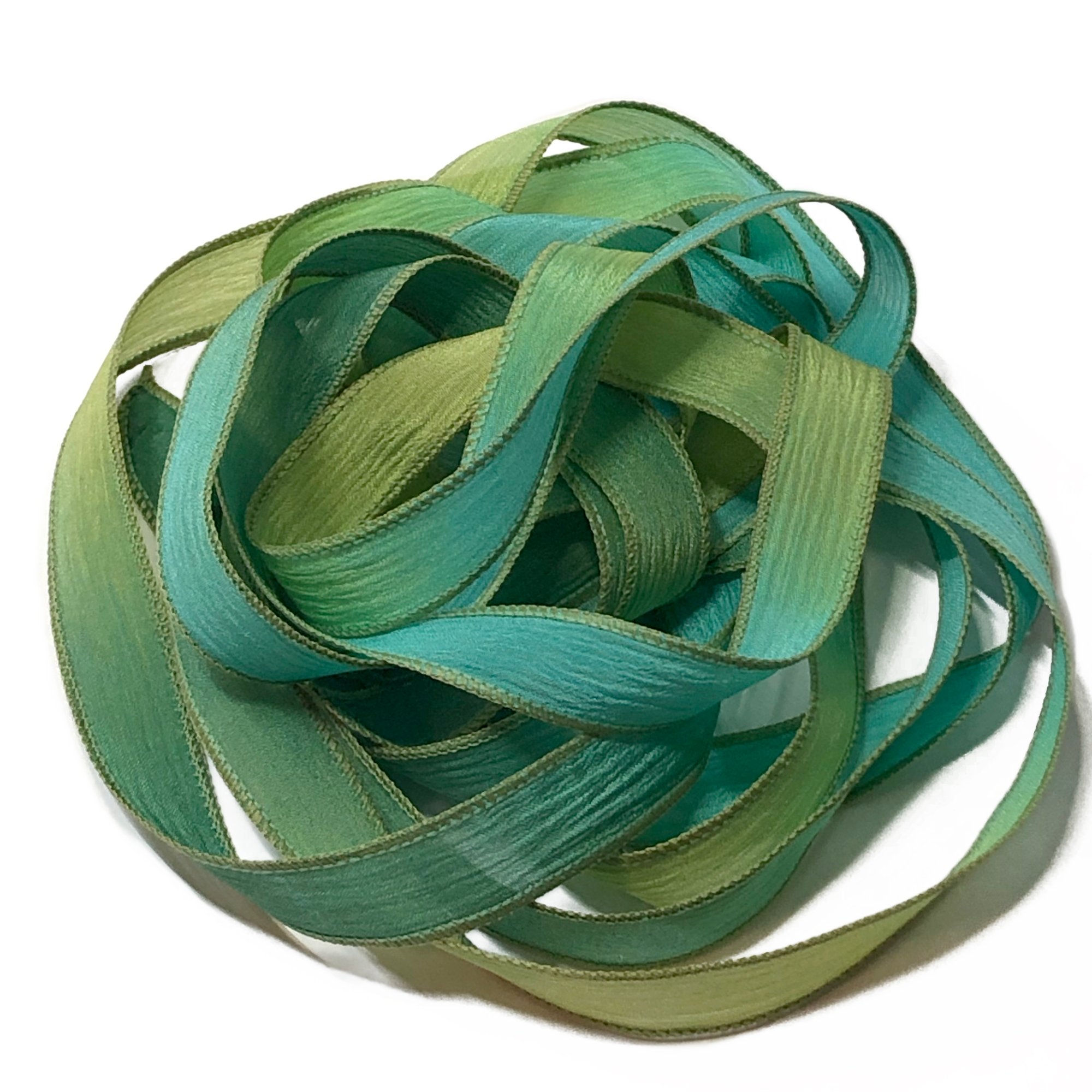 HAND DYED RIBBONS CAN APPEAR LIGHTER OR DARKER IN PERSON. SLIGHT VARIATIONS MAY OCCUR FROM ONE DYE LOT TO ANOTHER.