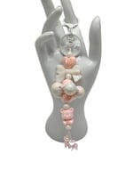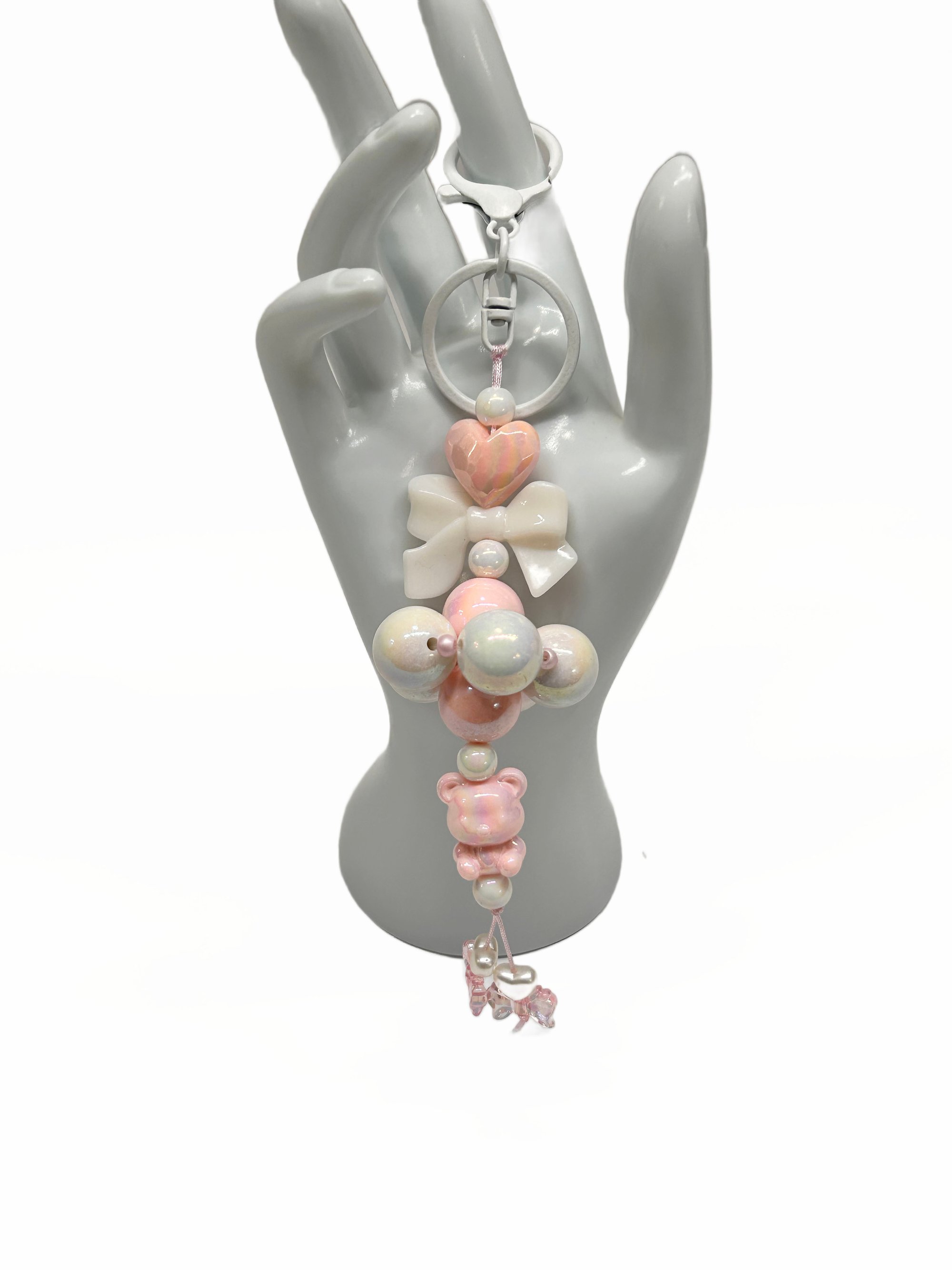1PC. PINK BEAR & HEART BEADED ACRYLIC/RESIN HAND MADE KEY RING /PURSE SWAG/CELL SWAG