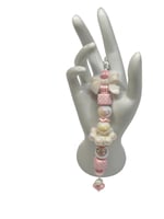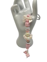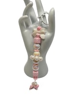 1PC. PINK /WHITE CHECK BEADS/WHITE BOW ACRYLIC/RESIN BEAD/HAND MADE KEY RING /PURSE SWAG/CELL SWAG