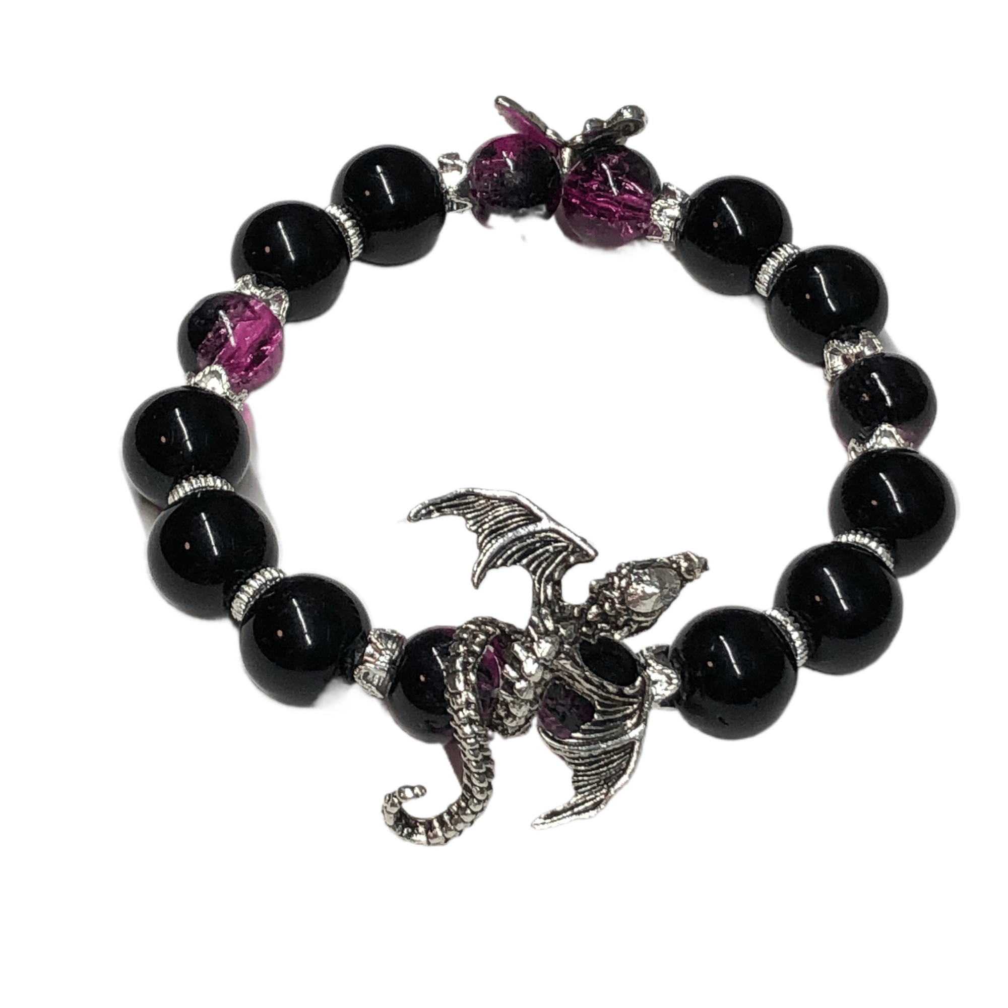 1PC. POLISHED CRACKLE GLASS BEAD/DRAGON FOCAL BEAD BRACELET by LAZY HOUND DESIGNS