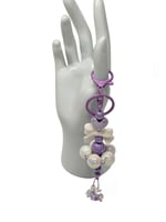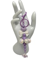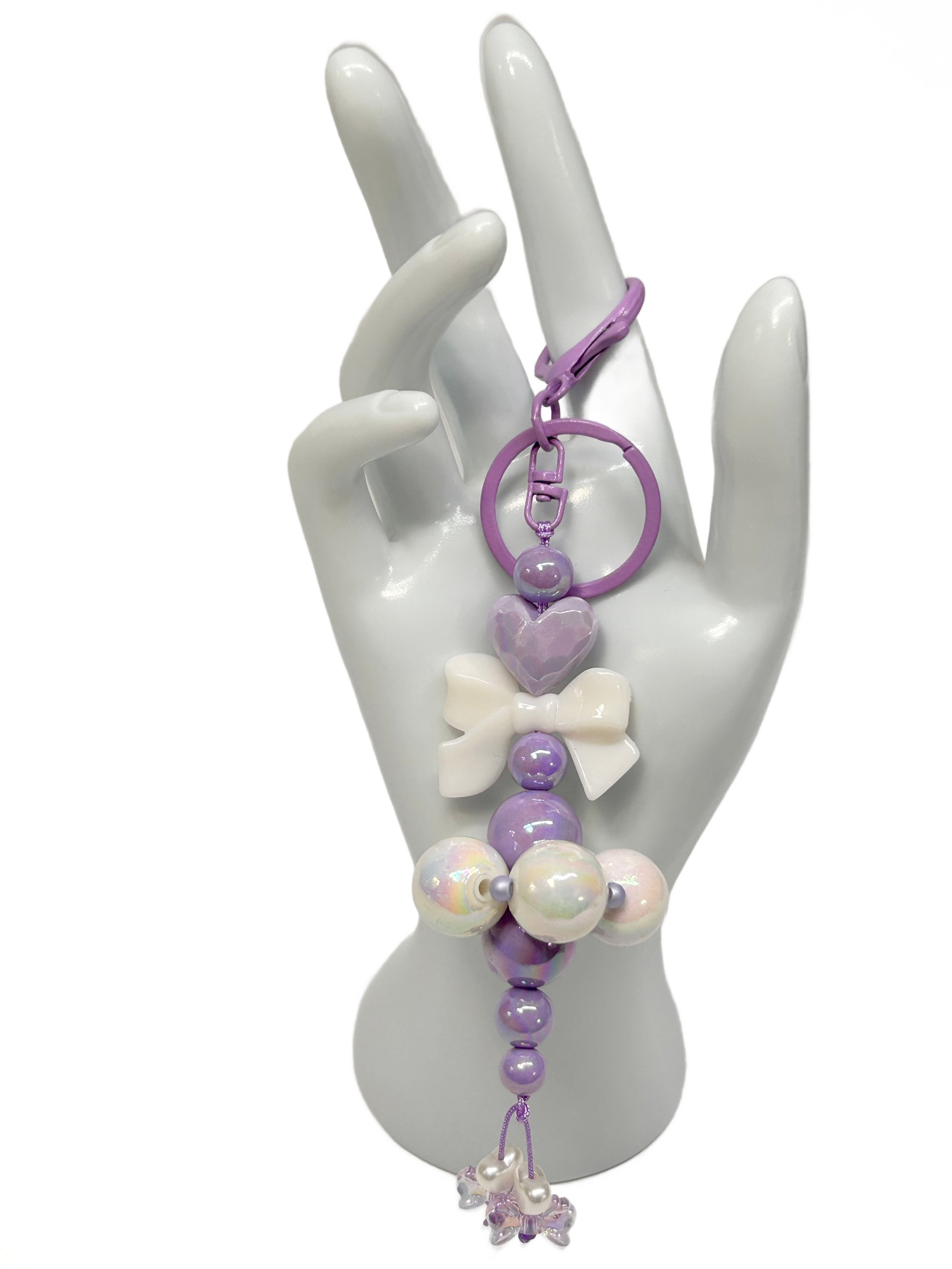 1PC. PURPLE HEART BEADED ACRYLIC/RESIN HAND MADE KEY RING /PURSE SWAG/CELL SWAG