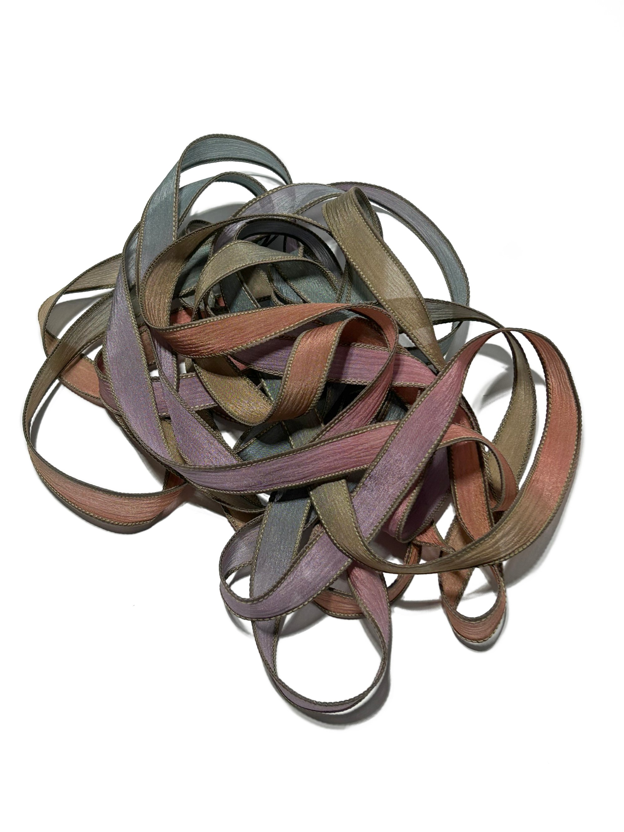 HAND DYED RIBBONS CAN APPEAR LIGHTER OR DARKER IN PERSON. SLIGHT VARIATIONS MAY OCCUR FROM ONE DYE LOT TO ANOTHER.