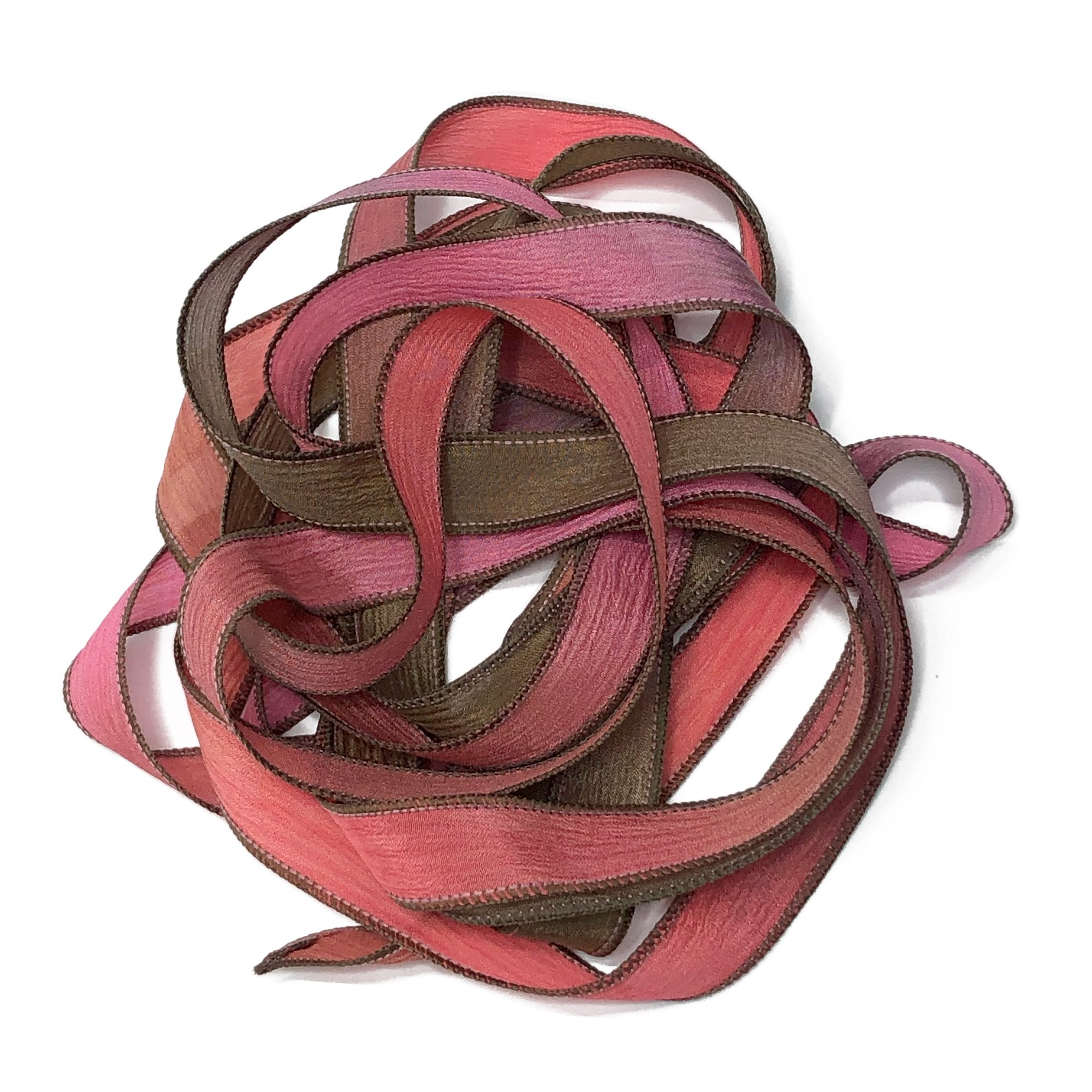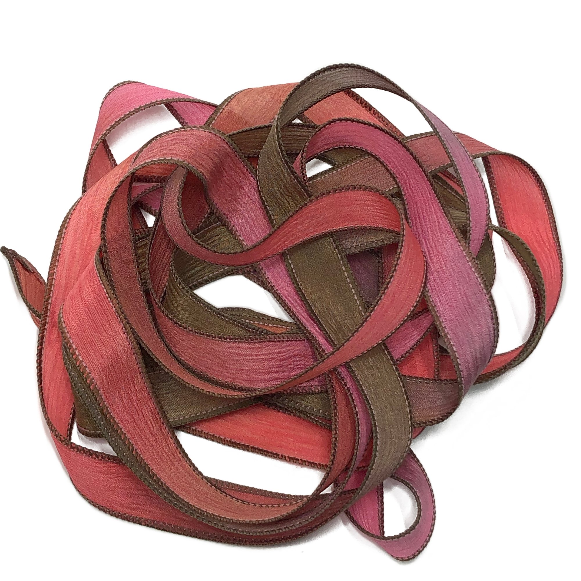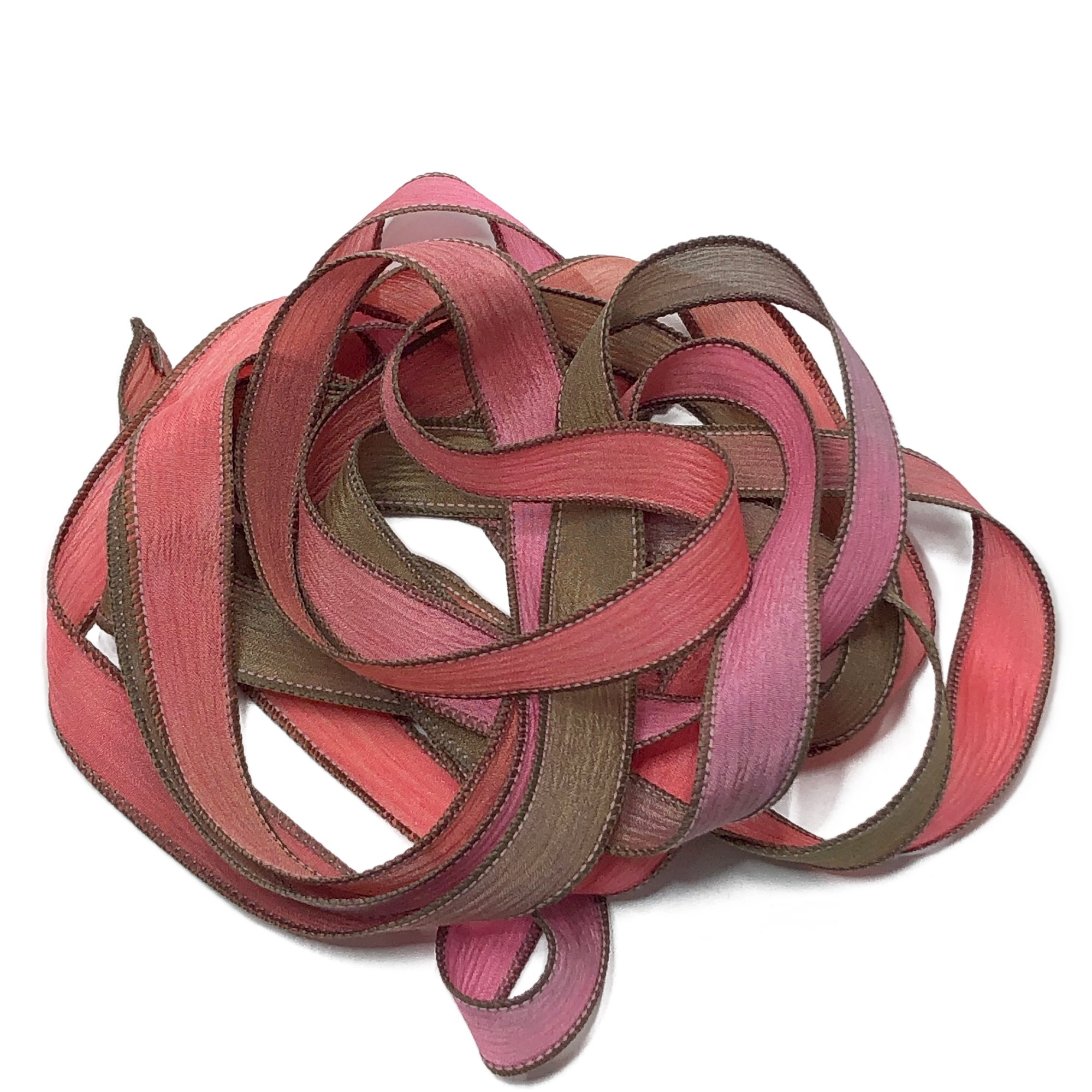 HAND DYED RIBBONS CAN APPEAR LIGHTER OR DARKER IN PERSON. SLIGHT VARIATIONS MAY OCCUR FROM ONE DYE LOT TO ANOTHER.