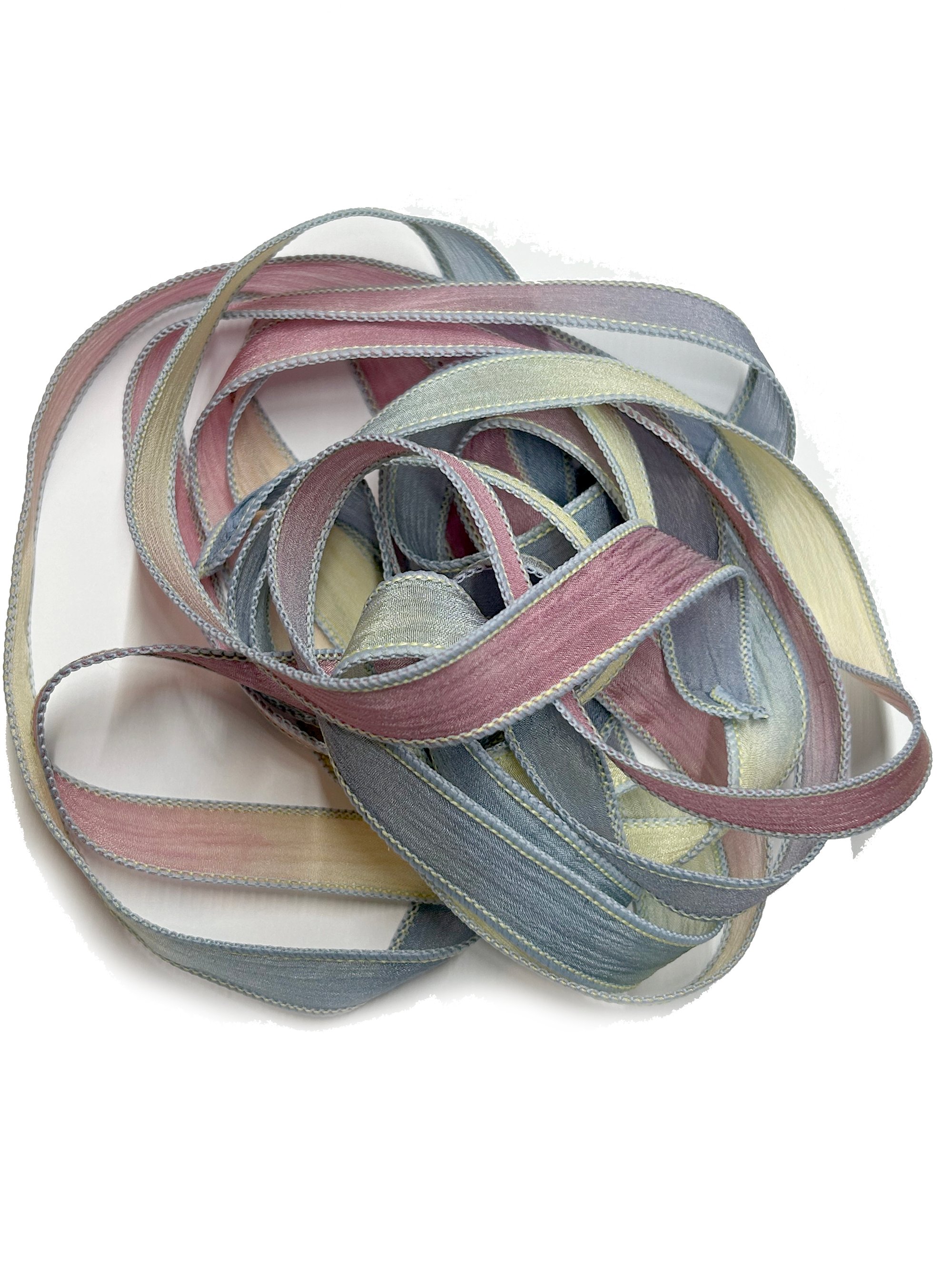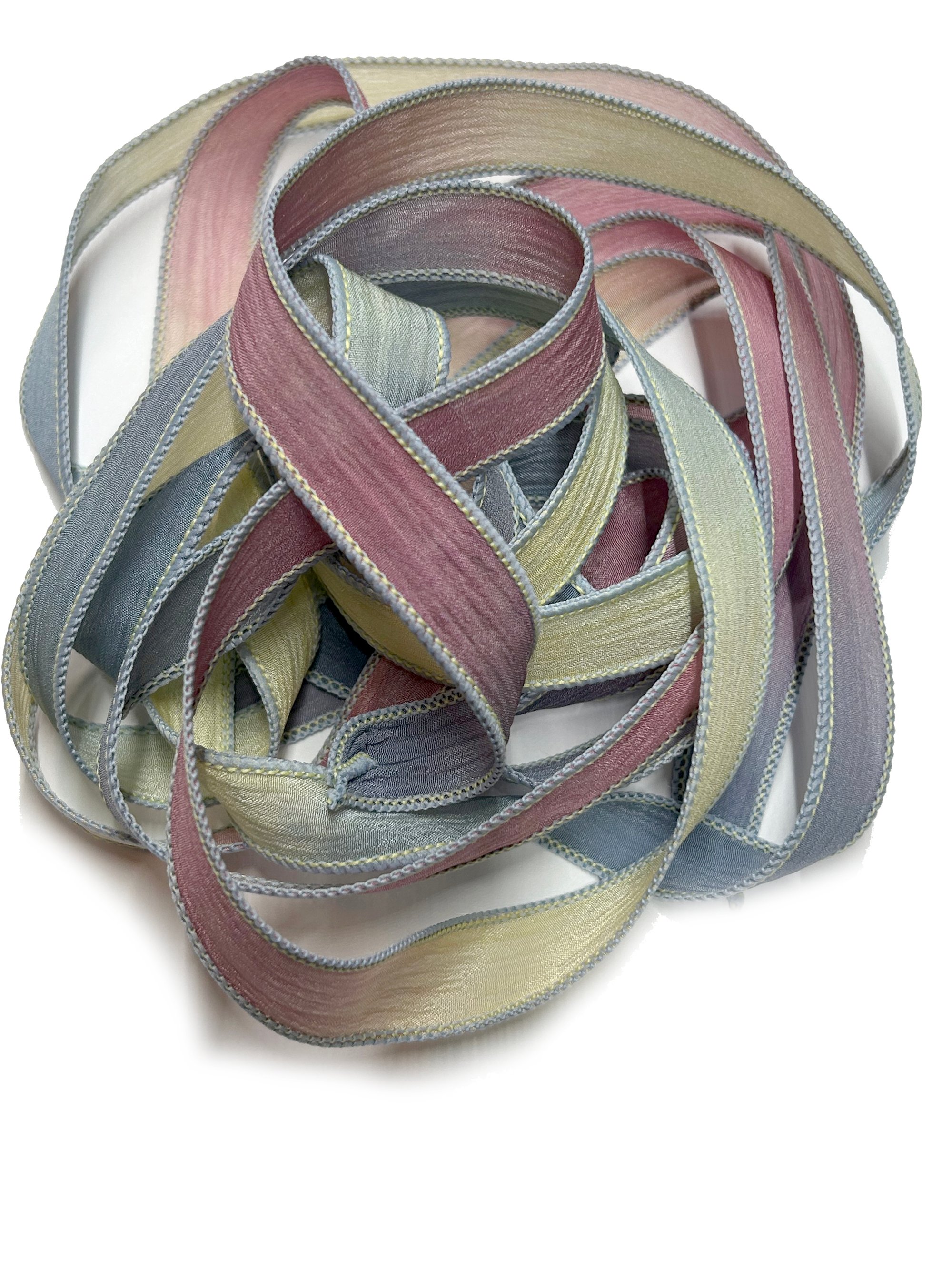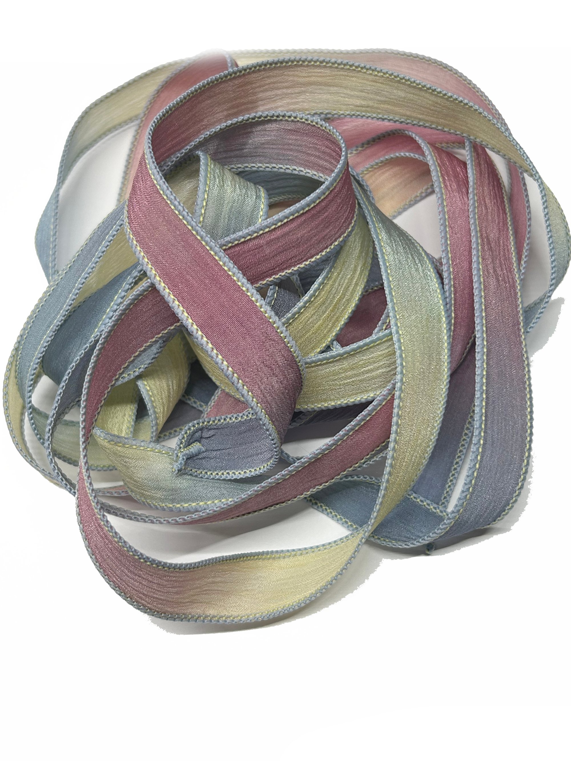 HAND DYED RIBBONS CAN APPEAR LIGHTER OR DARKER IN PERSON. SLIGHT VARIATIONS MAY OCCUR FROM ONE DYE LOT TO ANOTHER.