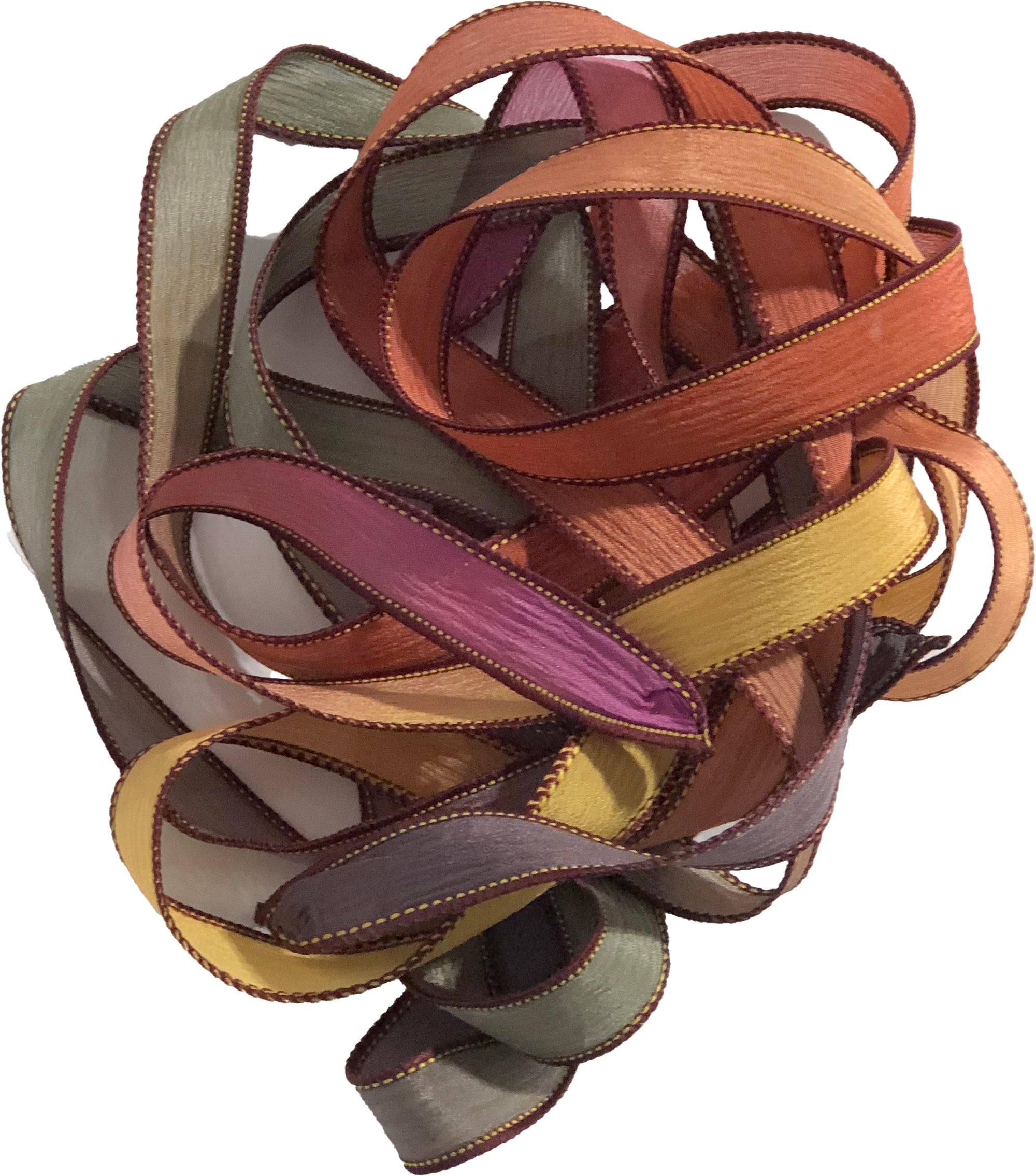 1PC. TURNING LEAVES 42" hand dyed wrist wrap bracelet silk ribbon/by COLOR KISSED SILK