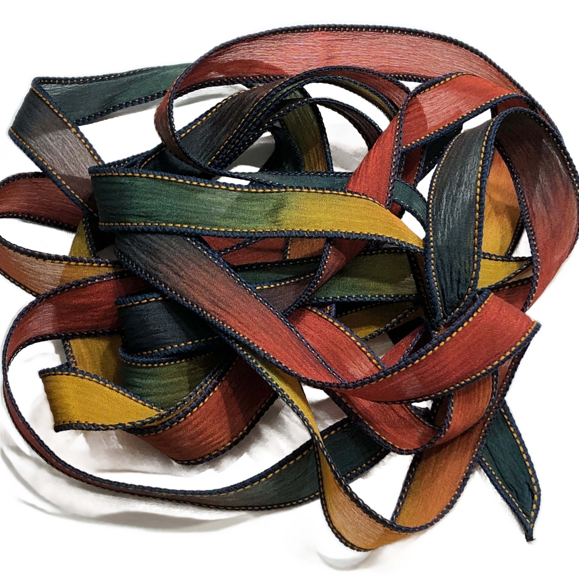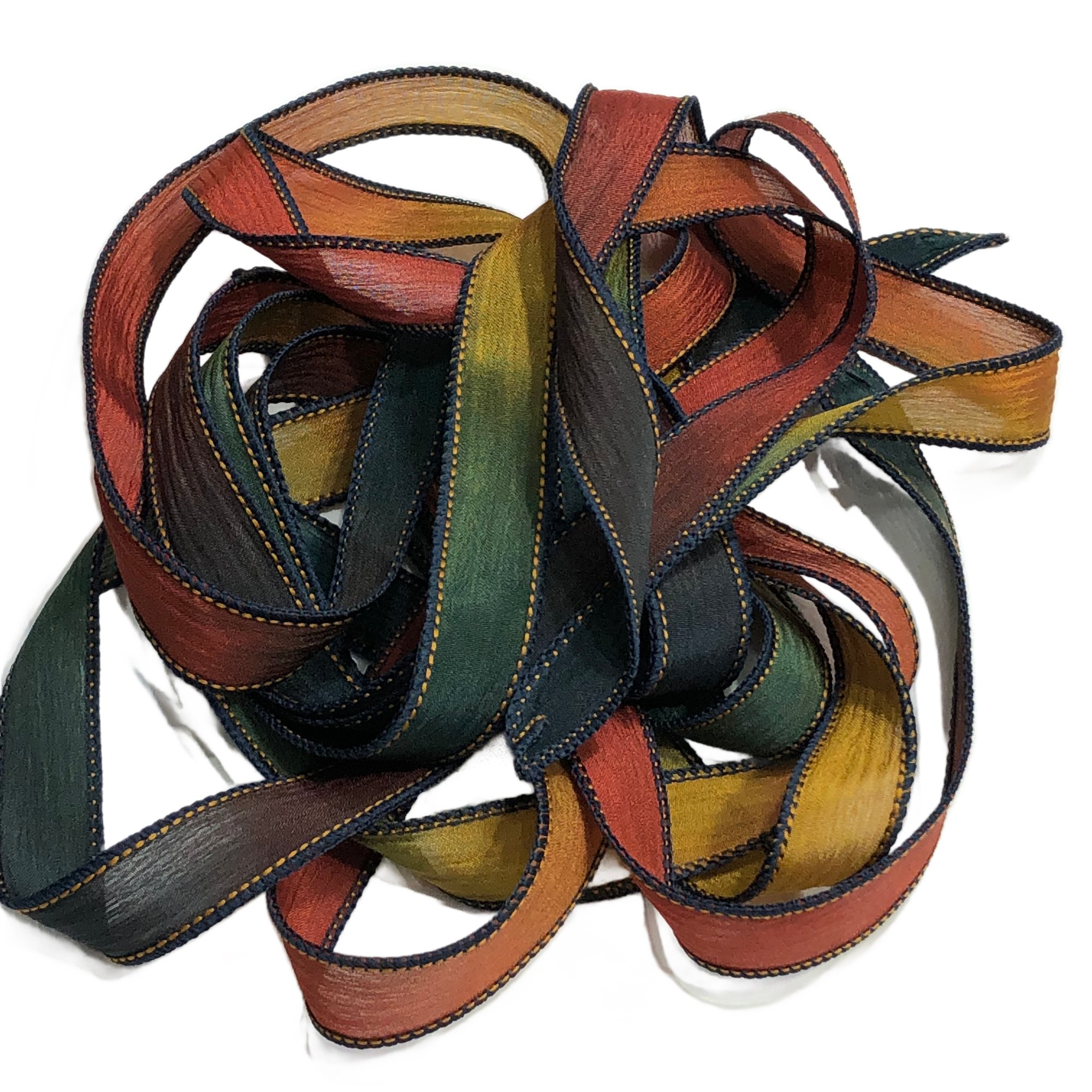 1PC. UTOPIA 42" hand dyed wrist wrap bracelet silk ribbon/by COLOR KISSED SILK