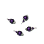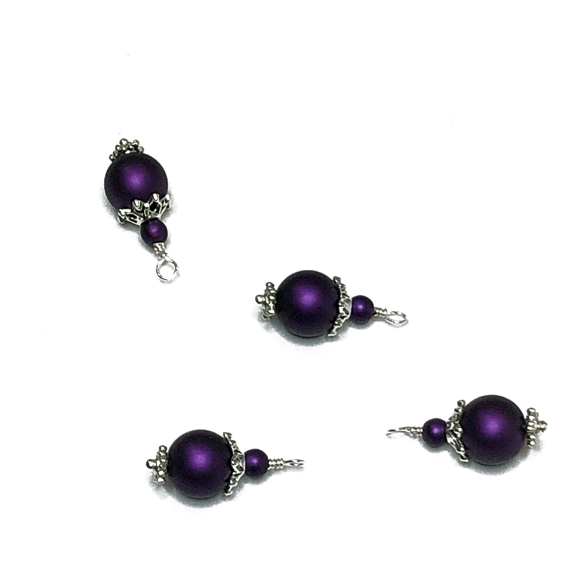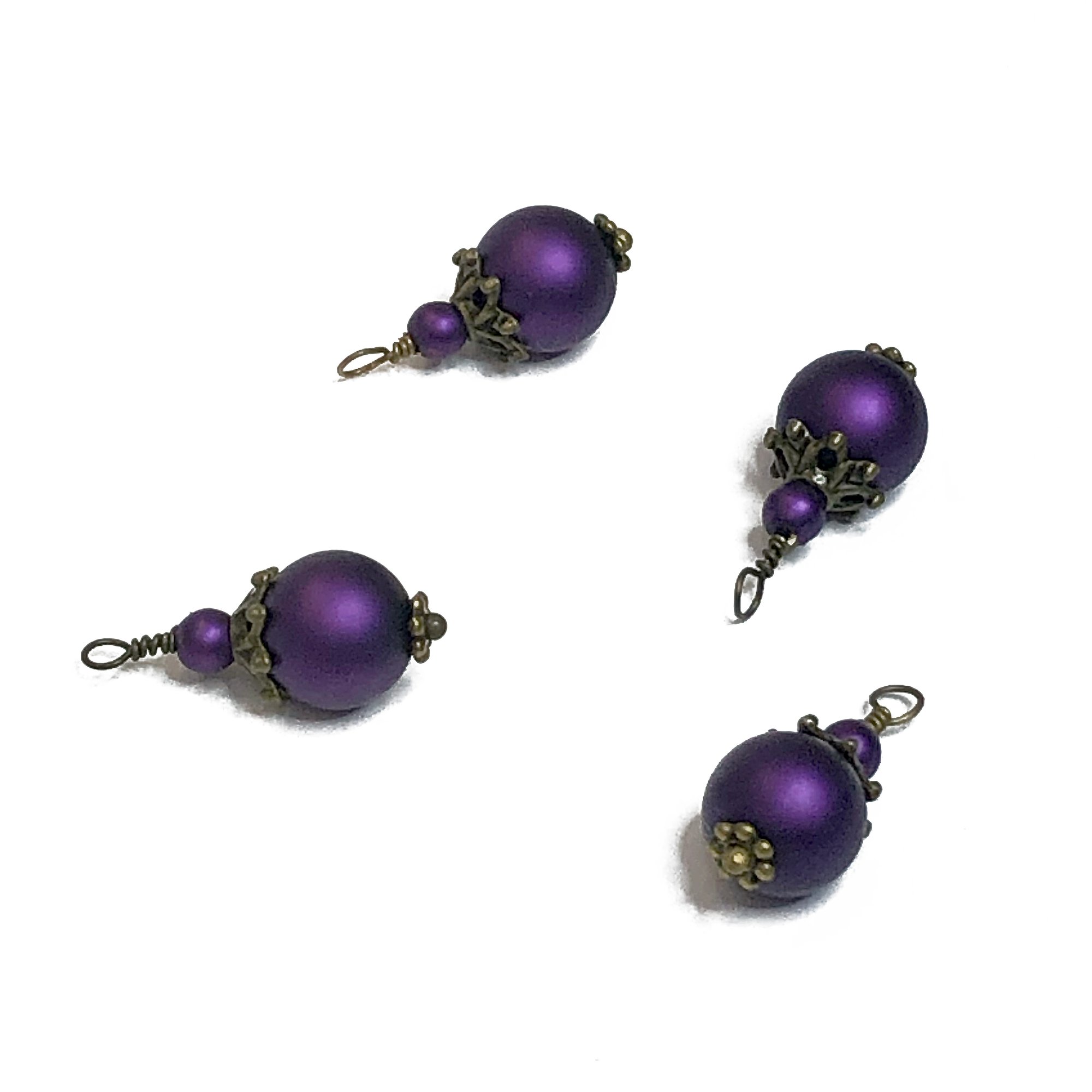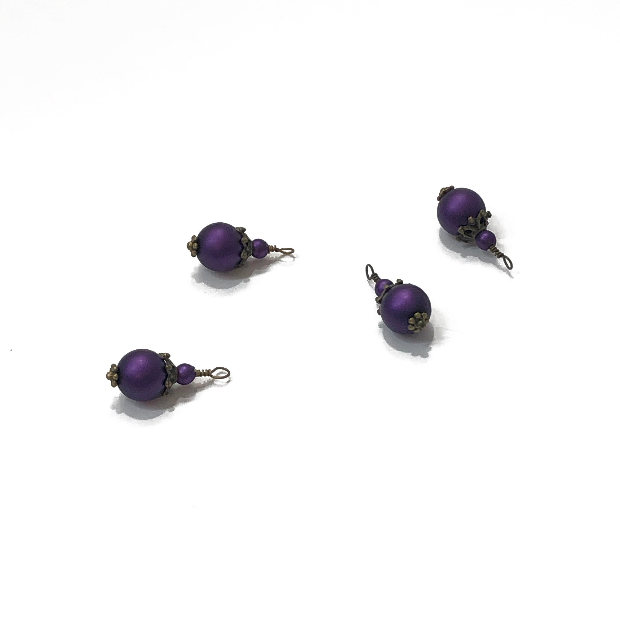 4PC set Metallic Matte Purple painted glass bead charms/Antique Silver/Antique Bronze plated accents