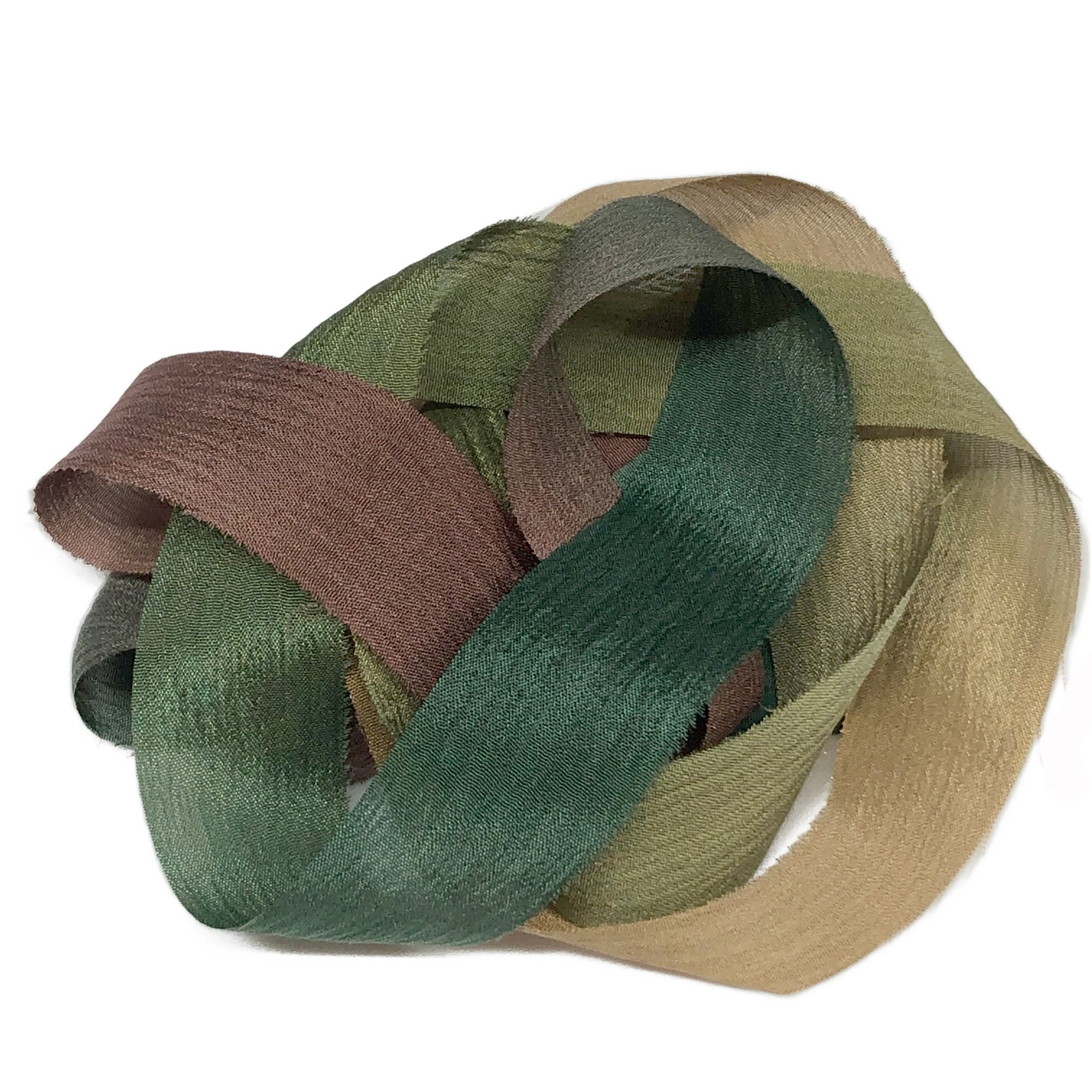 5PC, CHAMELEON 45" Hand Dyed Raw Edge Silk Craft Making Ribbon/Hand made Hand Dyed
