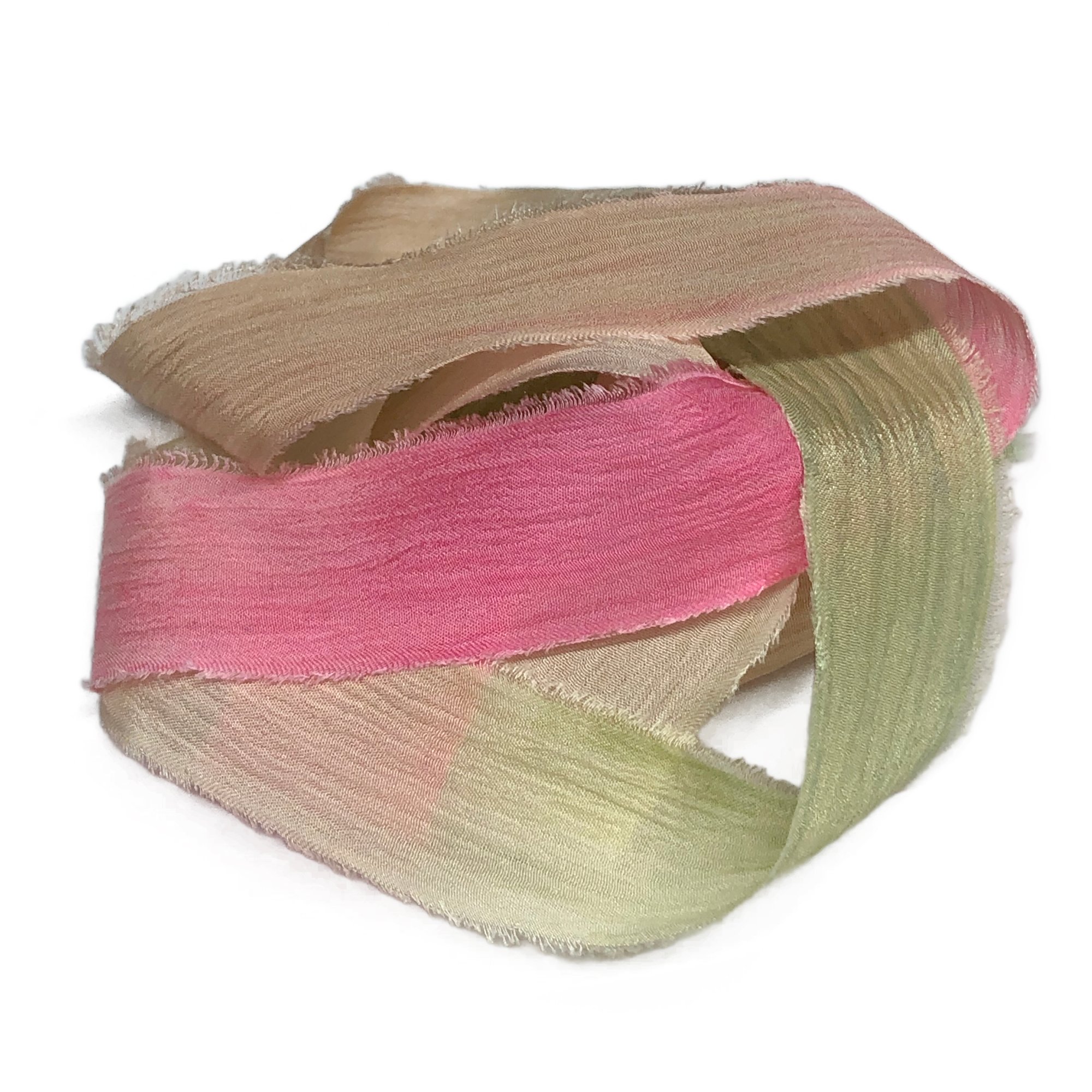 5PC. COCONUT PALMS 45" Hand Dyed Raw Edge Silk Craft Making Ribbon/Hand made Hand Dyed