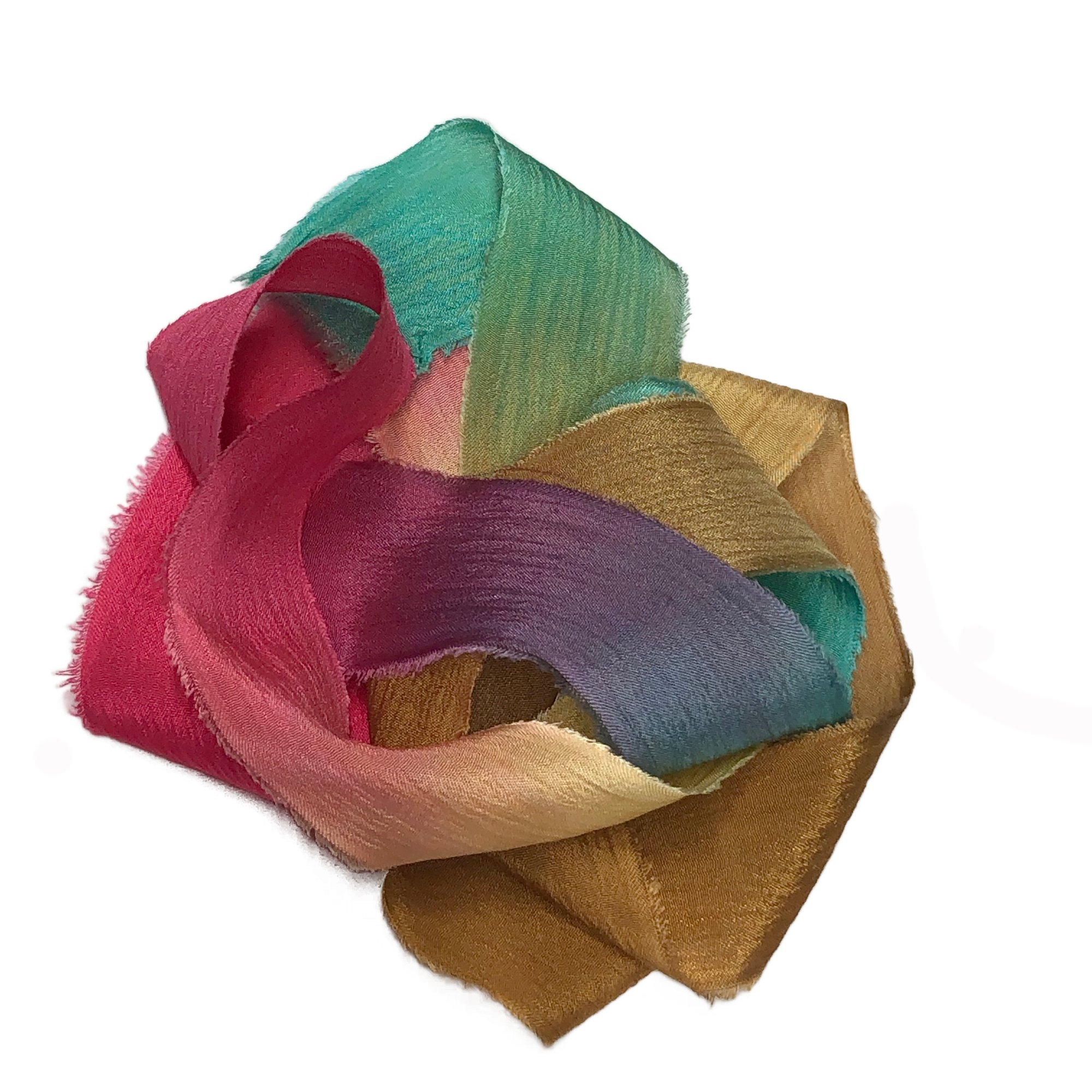 5PC. FIESTA 45" Hand Dyed Raw Edge Silk Craft Making Ribbon/Hand made Hand Dyed