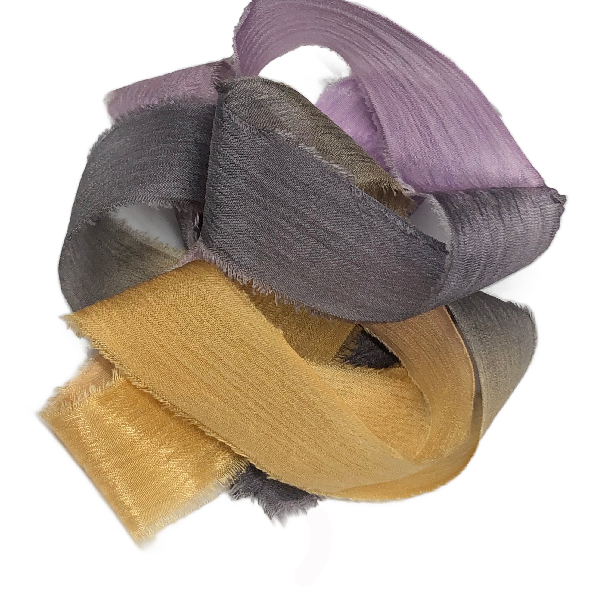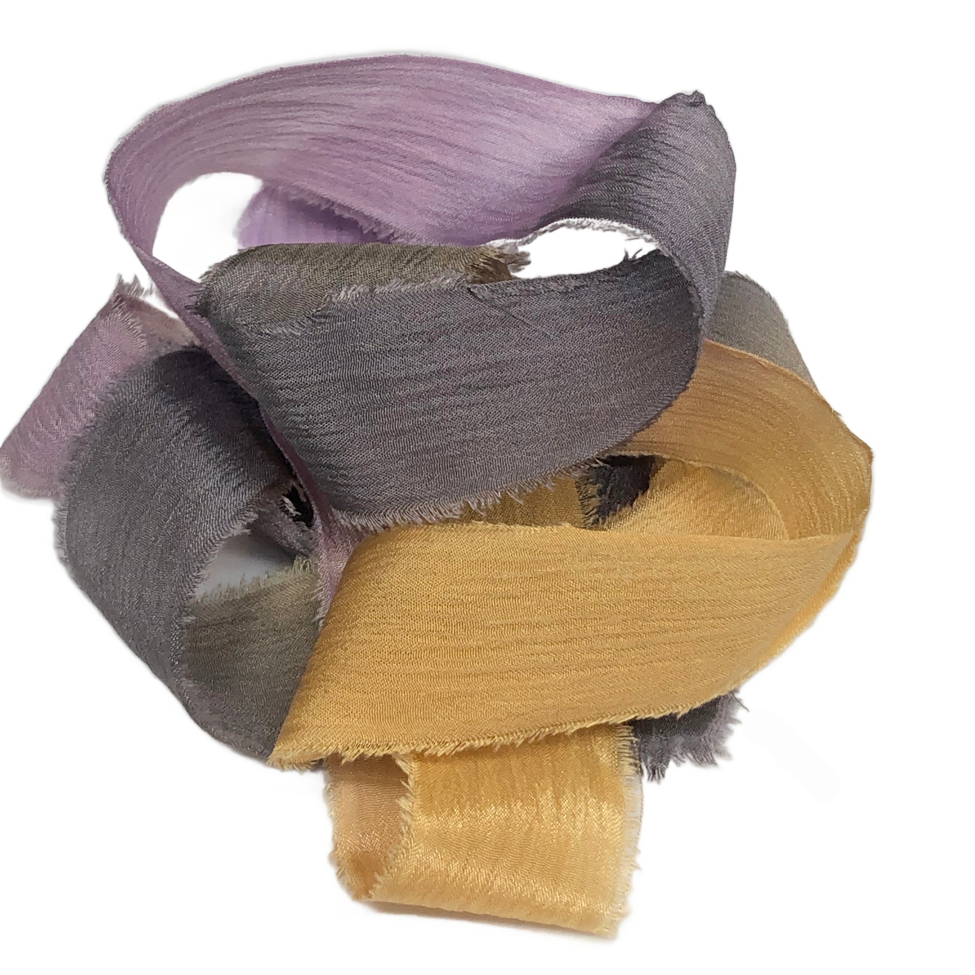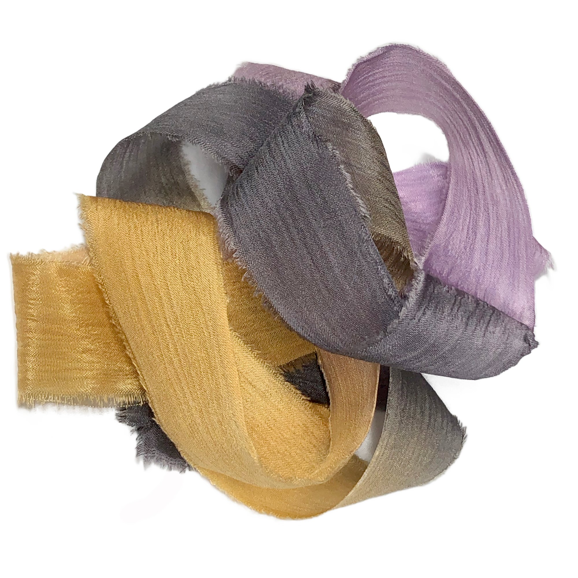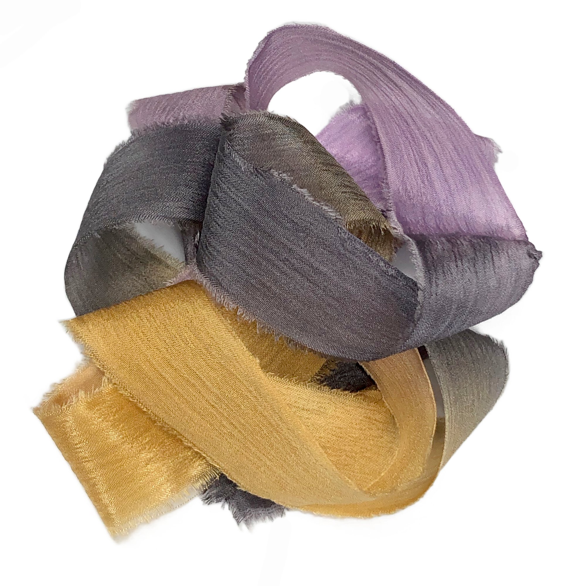 5PC. GHOST STORY 45" Hand Dyed Raw Edge Silk Craft Making Ribbon/Hand made Hand Dyed