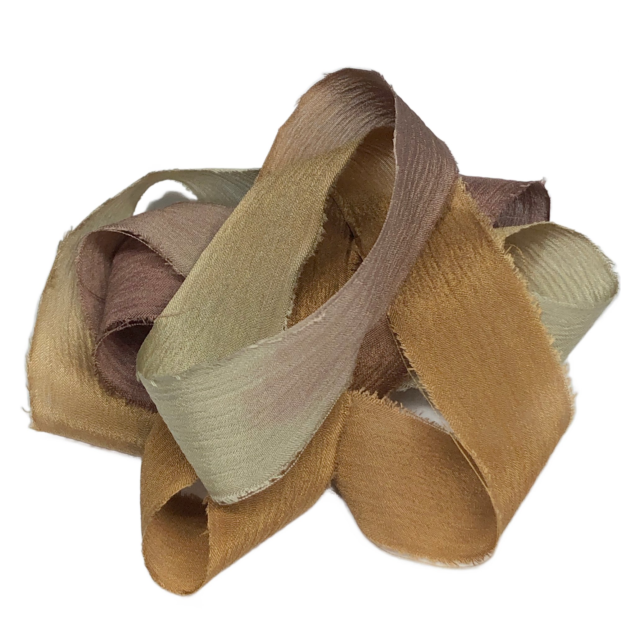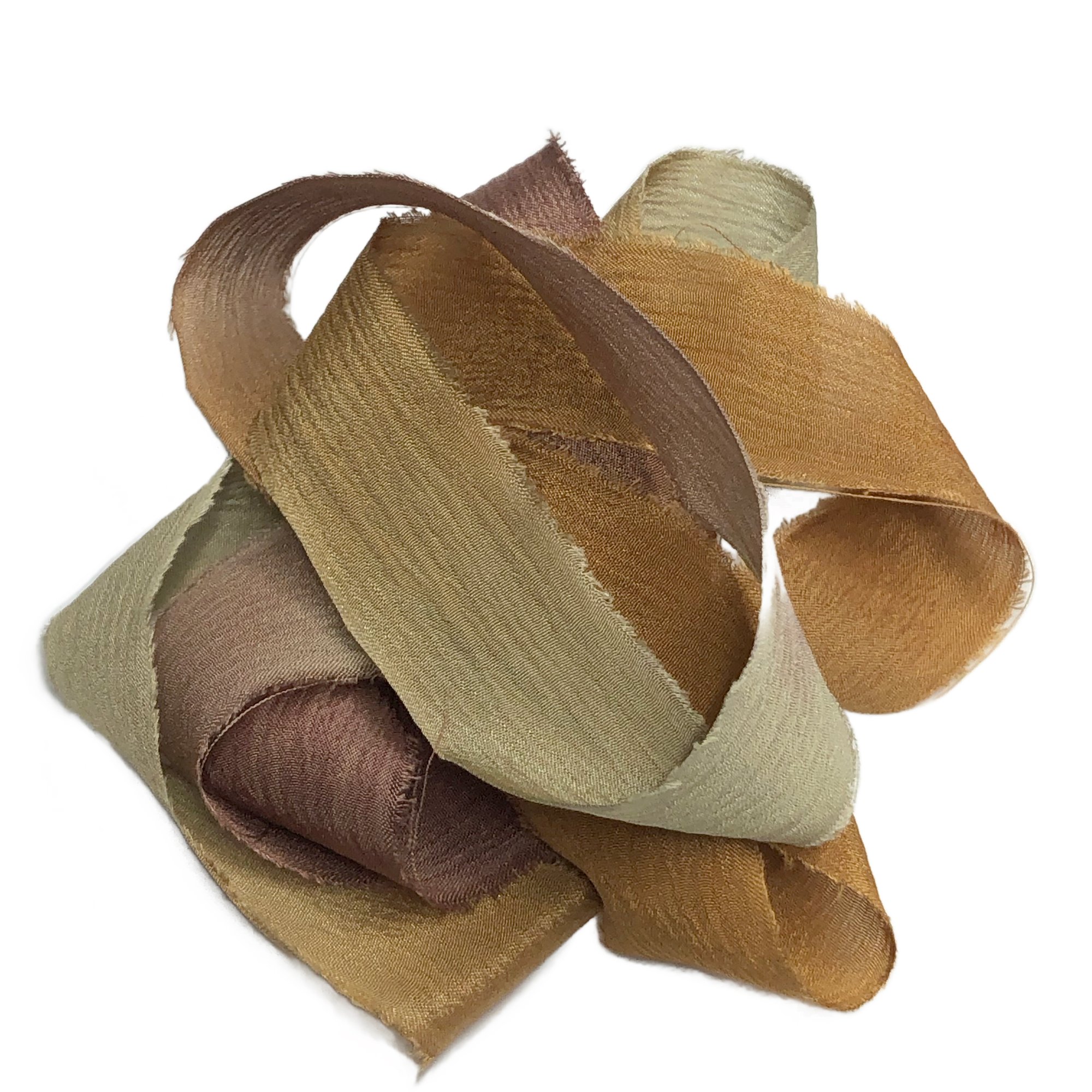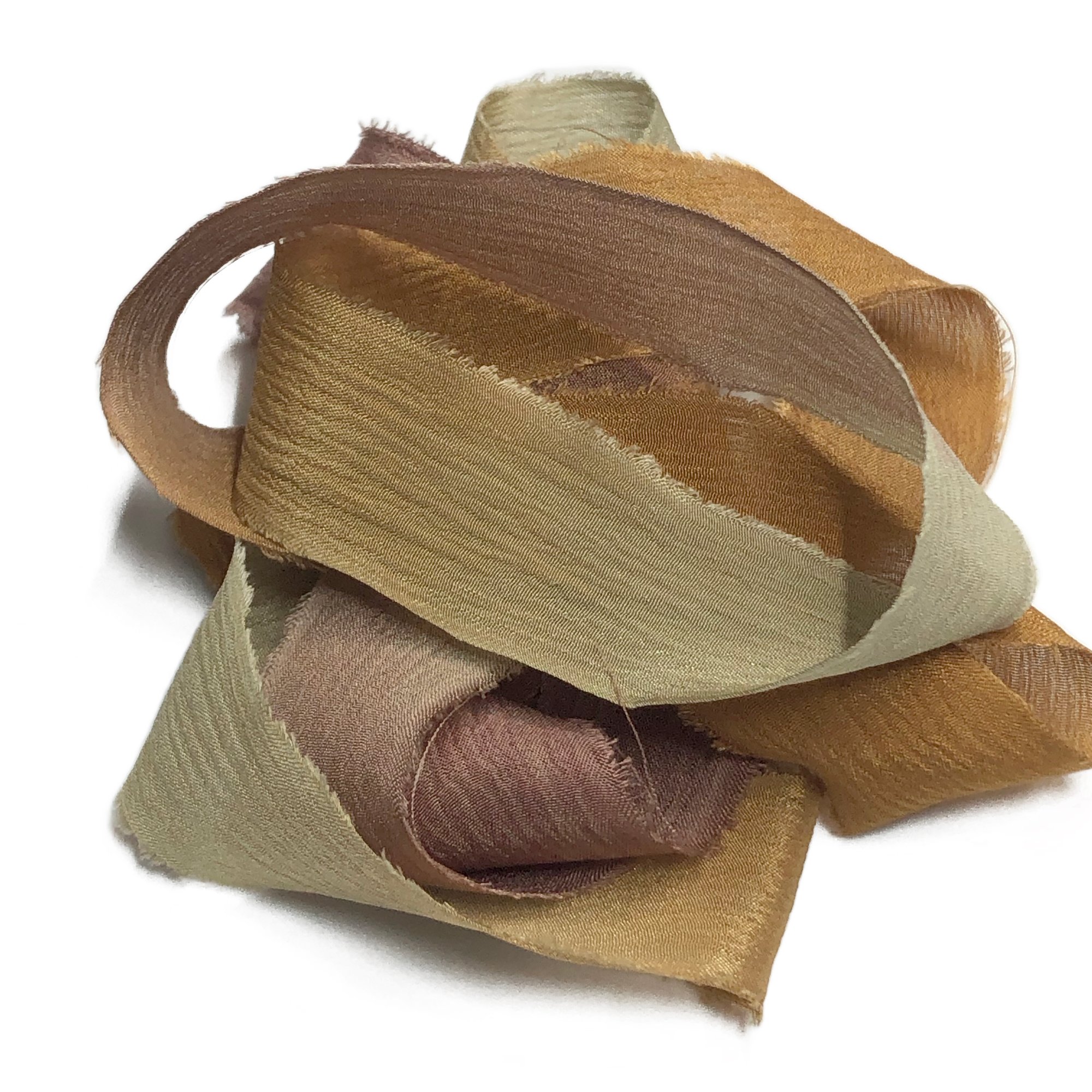 5PC. HARVEST 45" Hand Dyed Raw Edge Silk Craft Making Ribbon/Hand made Hand Dyed