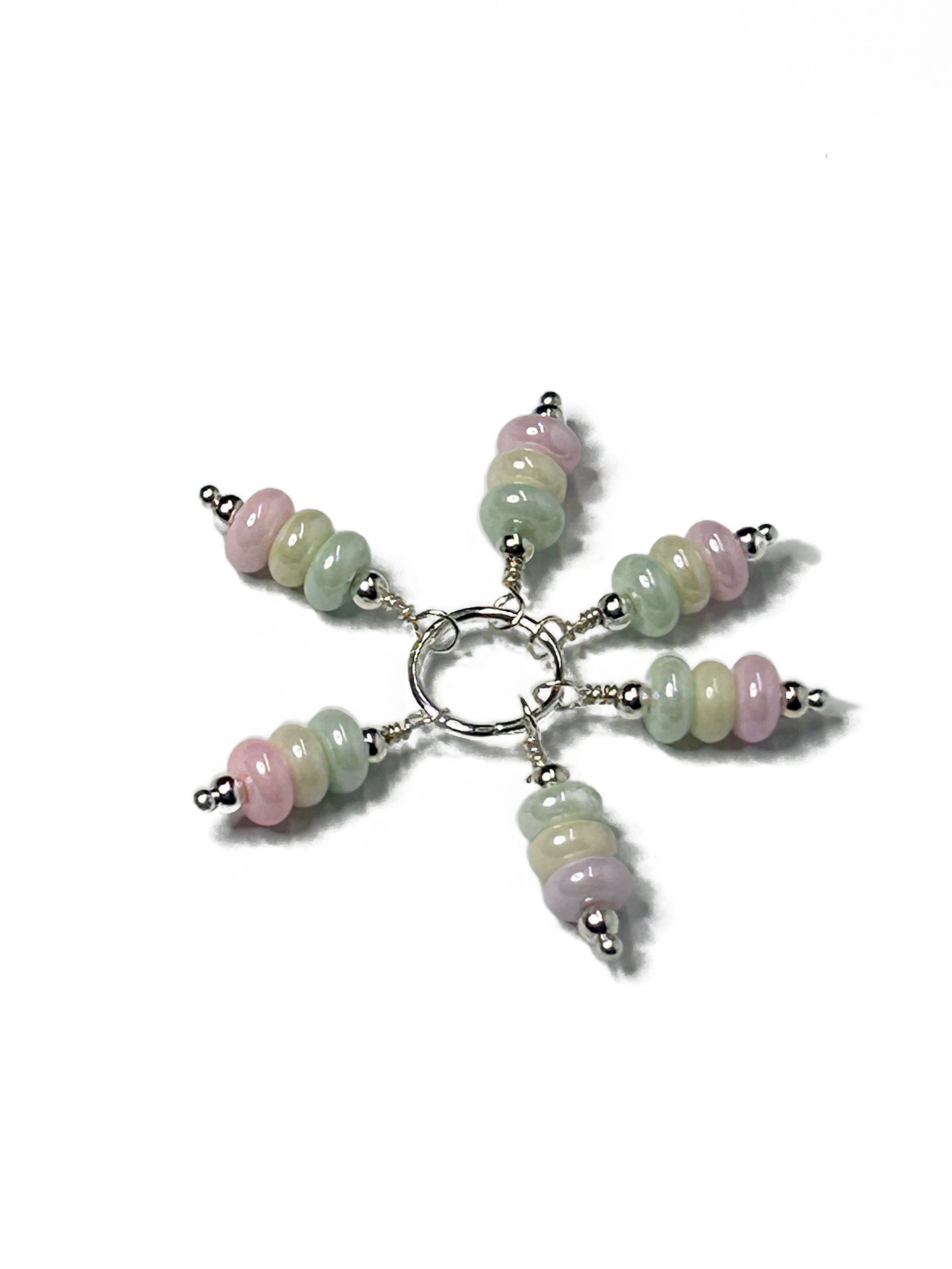 6PC. Handmade Glass Bead Charms: Silver Tone Plated Accents, Pink/Yellow/Green